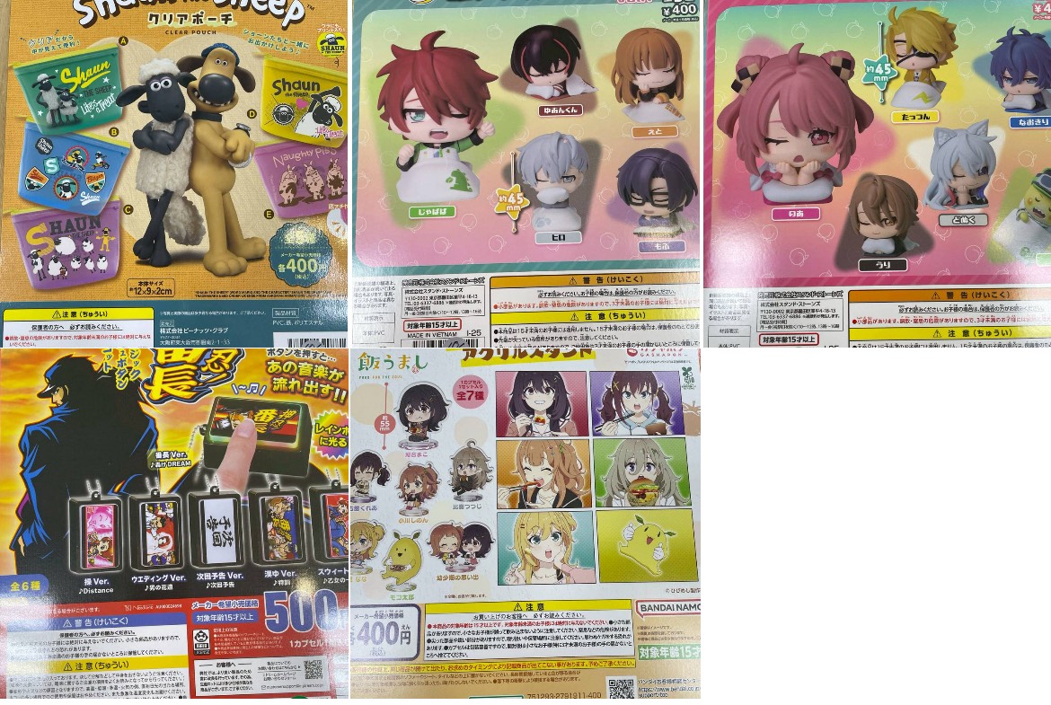 【四日市日永店】カプセルトイ情報◆#ひつじのショーン ##クリアポーチ #カラフルピーチ #おねむたん #押忍!番長 #スロット #ミュージックプッシュボタンマスコット #万代書店四日市 #ガチャ #ガシャポン #カプセルトイ■