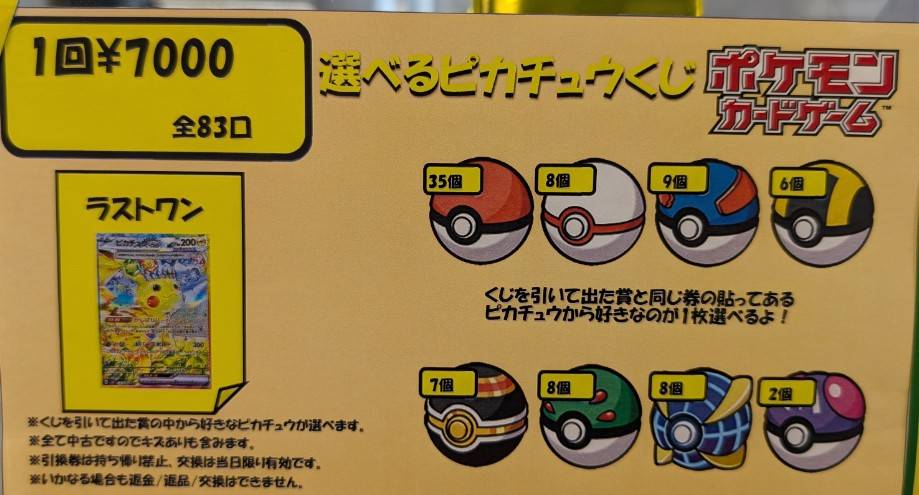 ⚡️一回7000円選べるピカチュウくじ⚡️