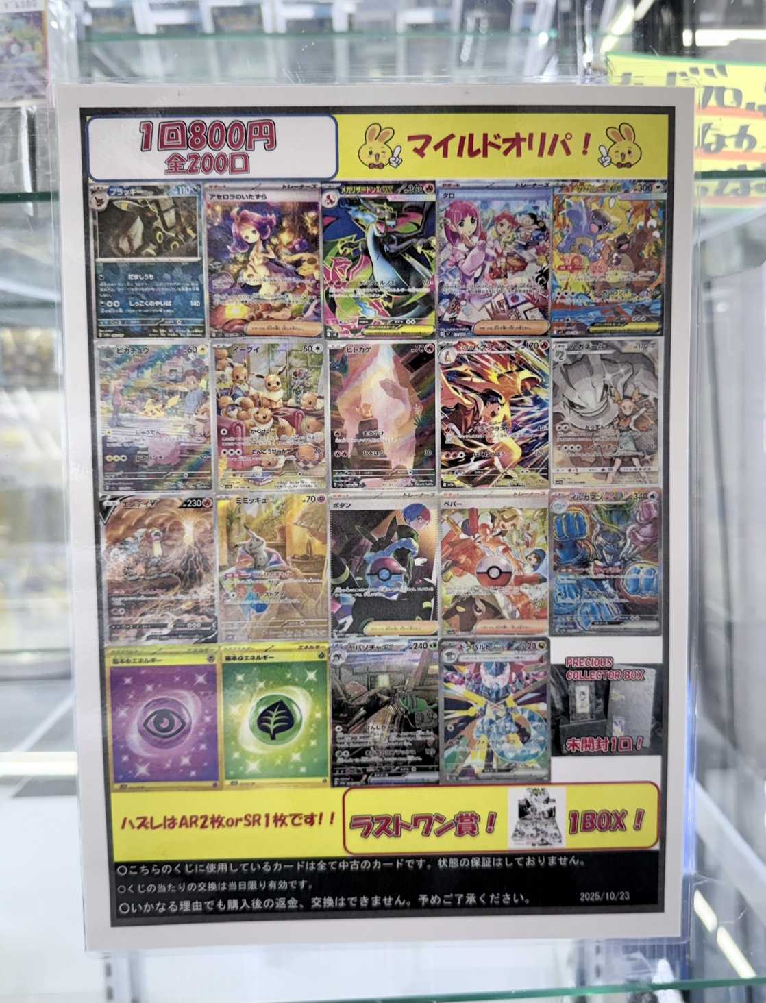 【鈴鹿店】ポケカマイルドオリパ発売中🤩 万代書店鈴鹿店 鈴鹿店 カード 鈴鹿店 ガチャ 2025年10月23日 カードコーナーより! ポケカマイルドオリパ発売中🤩 1回800円 全200口 ブラッキーマスターボールミラー、アセロラのいたずらSAR、メガリザードンex SRなどが当たります🌟 ラストワンはホワイトフレア1BOXです!