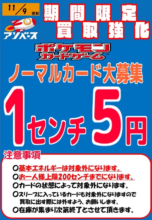 【アソベース豊川店】ポケモンカードノーマルカード大募集! new アソベース豊川店 豊川店 買取情報 豊川店 カード 2025年11月9日 ポケモンカードノーマルカード大募集! ※2025/11/9現在の価格となります。 在庫状況・状態によってお値段が変動いたします。予めご了承ください。 **************** こちら↓もぜひチェックしてみてくださいね♪(*´▽`*) ・最新のイベント情報はこちら ・最新の買取情報はこちら