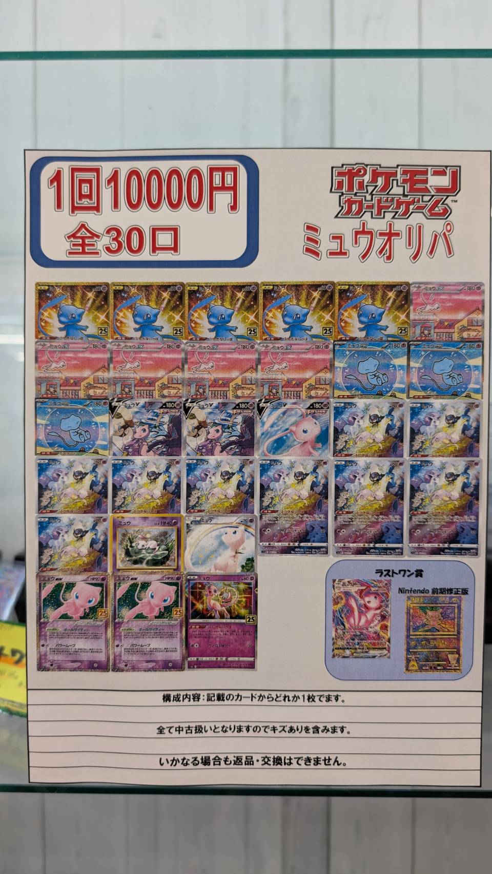 【四日市日永店】🔥一回10000円ミュウオリパ🔥 万代書店四日市日永店 四日市日永店 カード 2025年11月19日 カード 一回10000円ミュウオリパ ミュウしか当たらん! ミュウオリパ作成しました😎 いろんなミュウが大集合🥰 ぜひ挑戦してみてください🫶