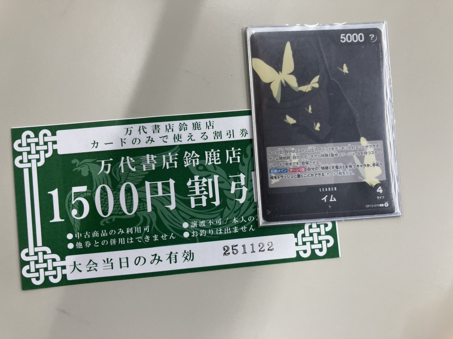 【鈴鹿店】★ワンピースカードゲーム大会結果報告!★ new 万代書店鈴鹿店 鈴鹿店 イベント情報 鈴鹿店 カード 2025年11月22日 ワンピースカードゲーム大会結果報告! 本日のワンピースカードゲームスタンダードバトルは3名の方に参加していただきました! 優勝は セリオ さん 黒イム ミホーク期待してます 優勝おめでとうございます♪ 次回は11/29(土)の開催です **************** こちら↓もぜひチェックしてみてくださいね♪(*´▽`*) ・最新のイベント情報はこちら ・最新の買取情報はこちら