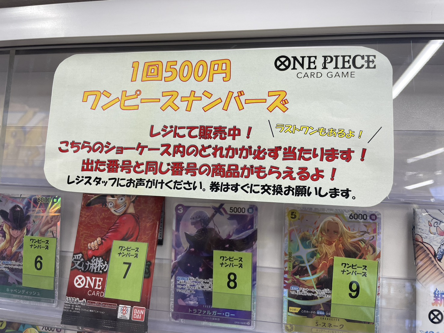 🏴☠️1回500円 ワンピースナンバーズ🏴☠️レジにて販売中‼️
