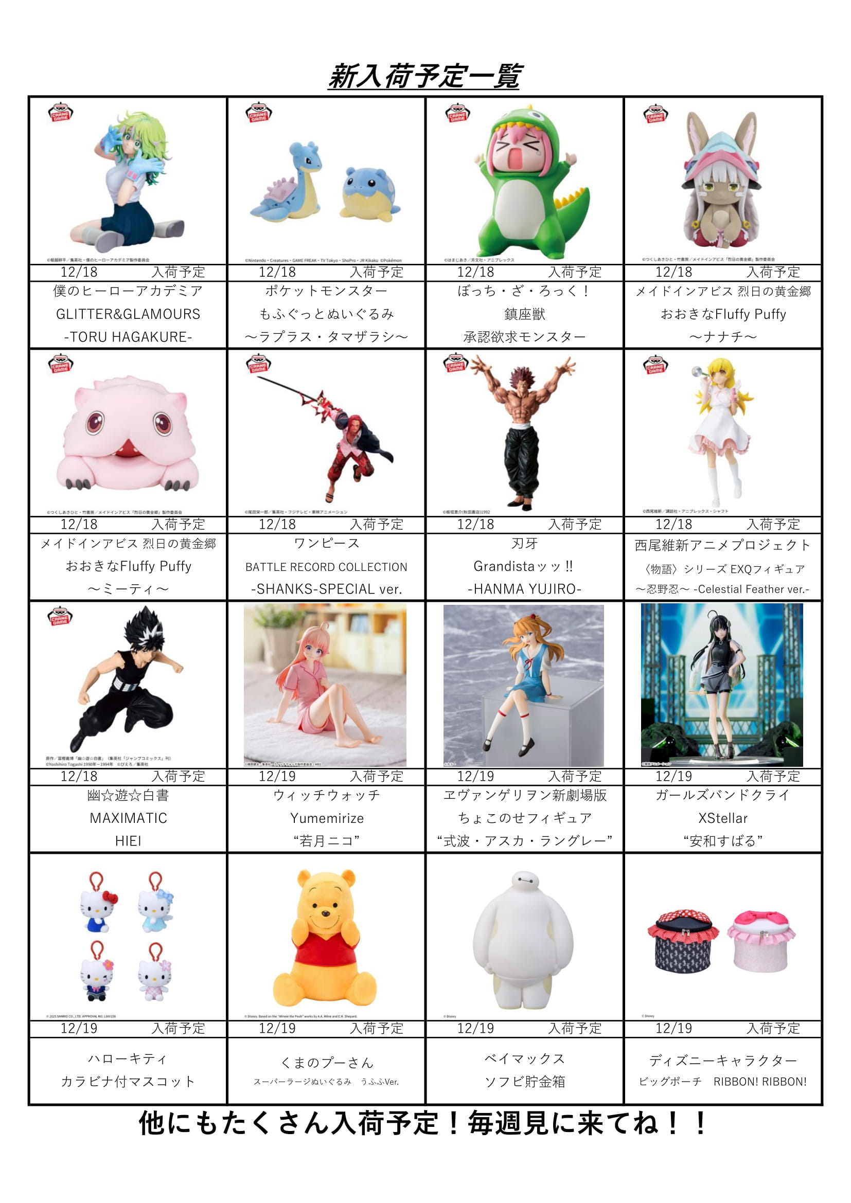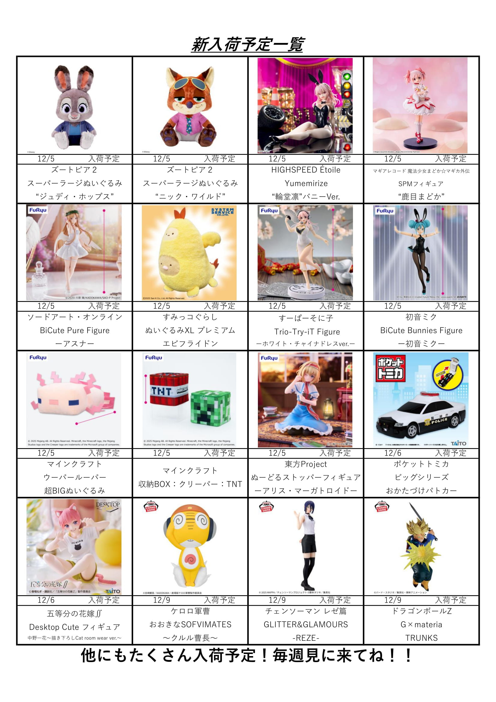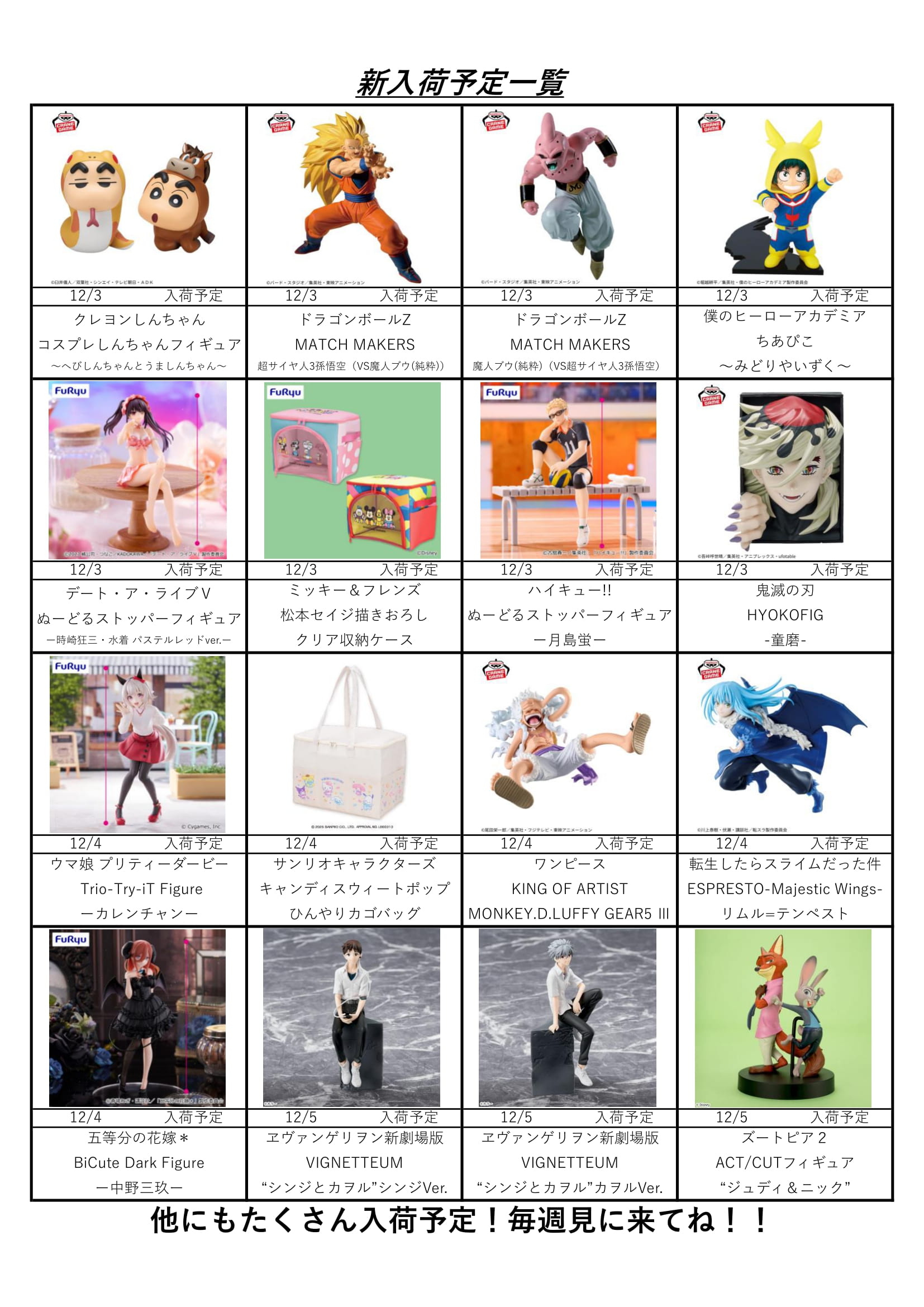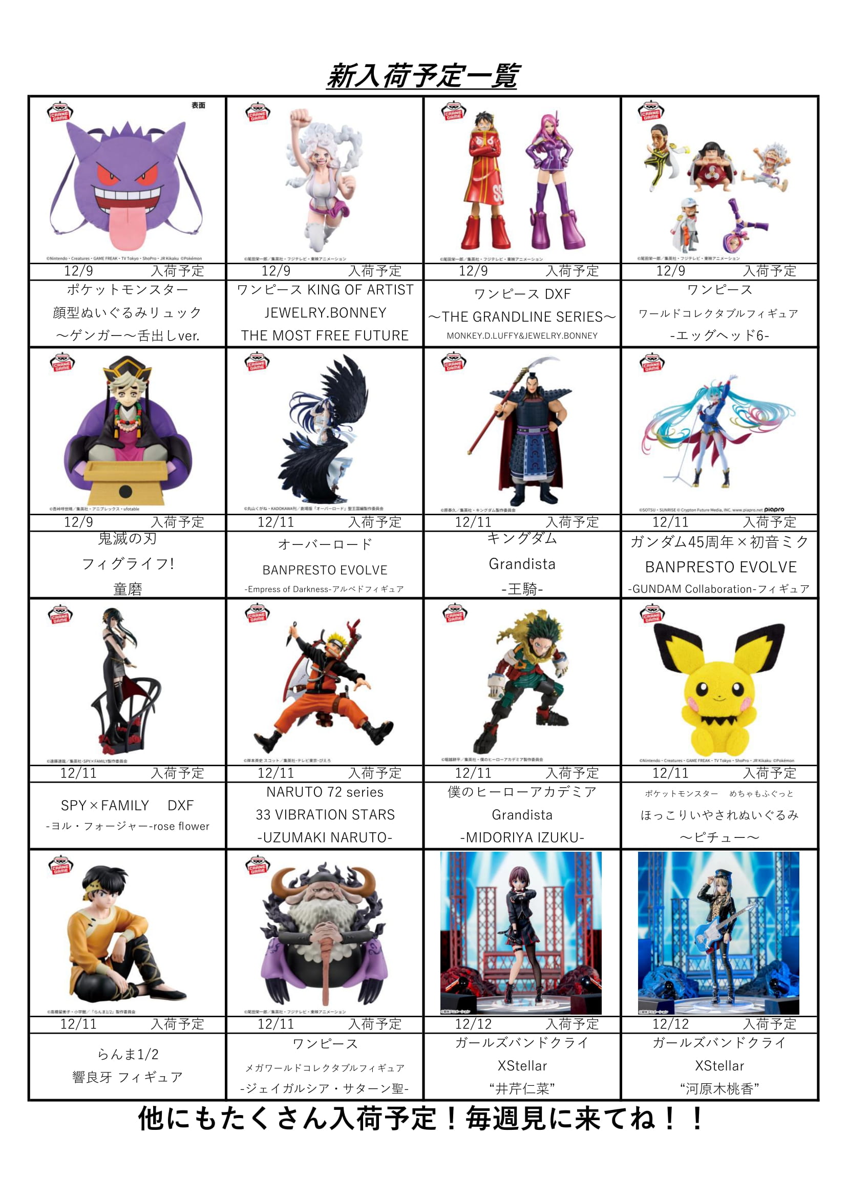 【アソベース豊川店】★12月アミューズ景品入荷予定表★