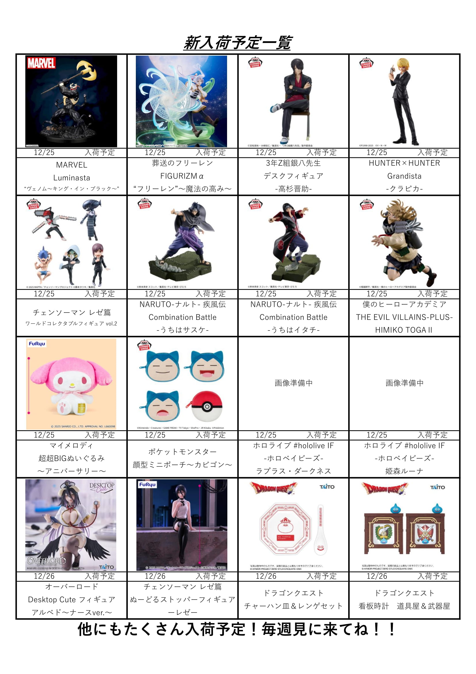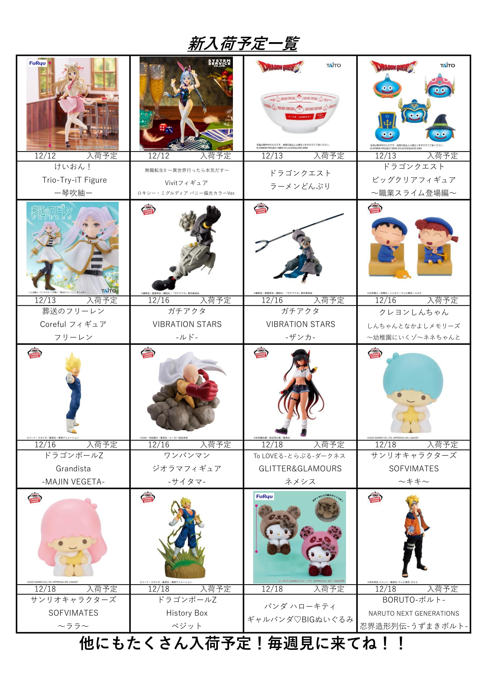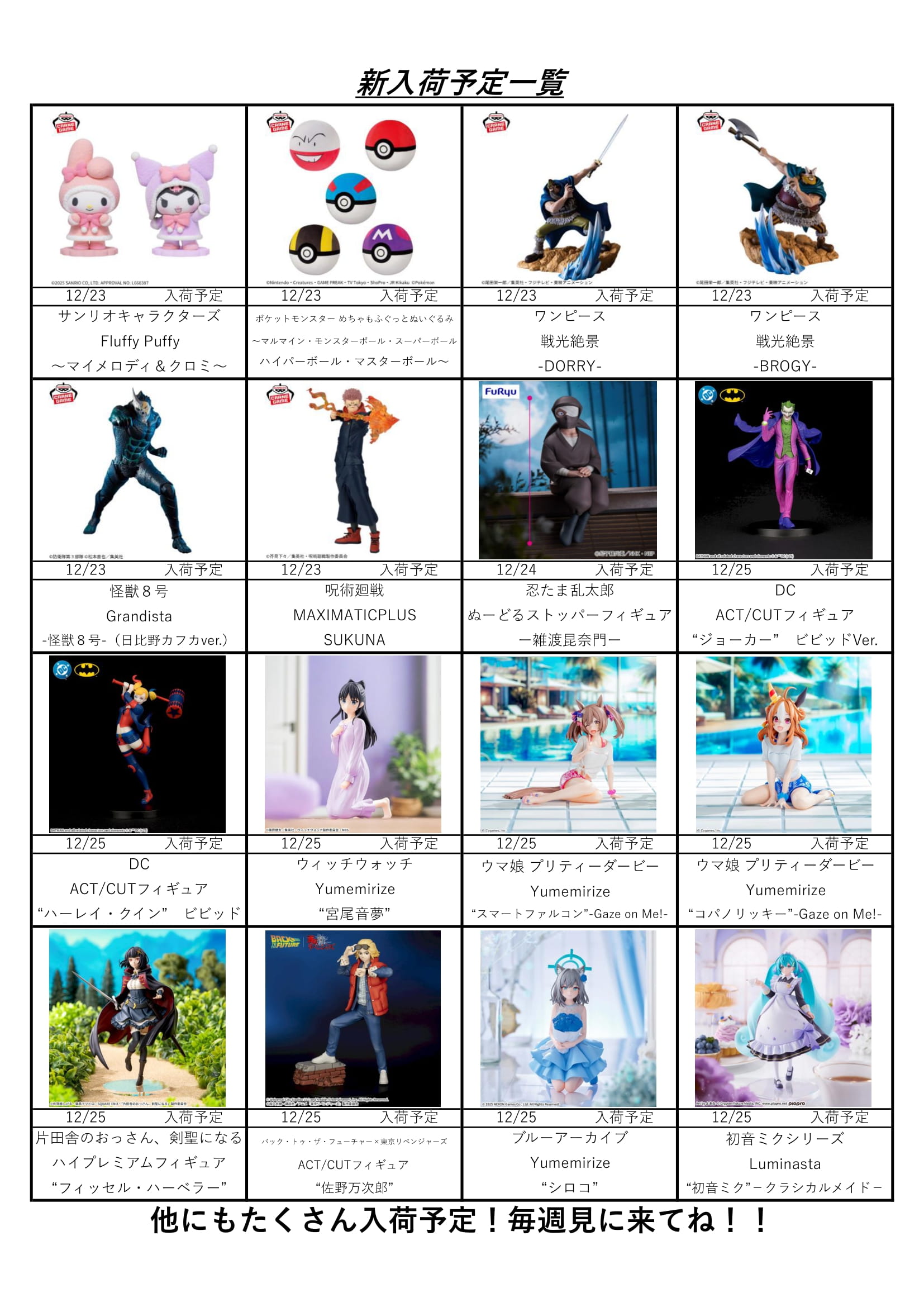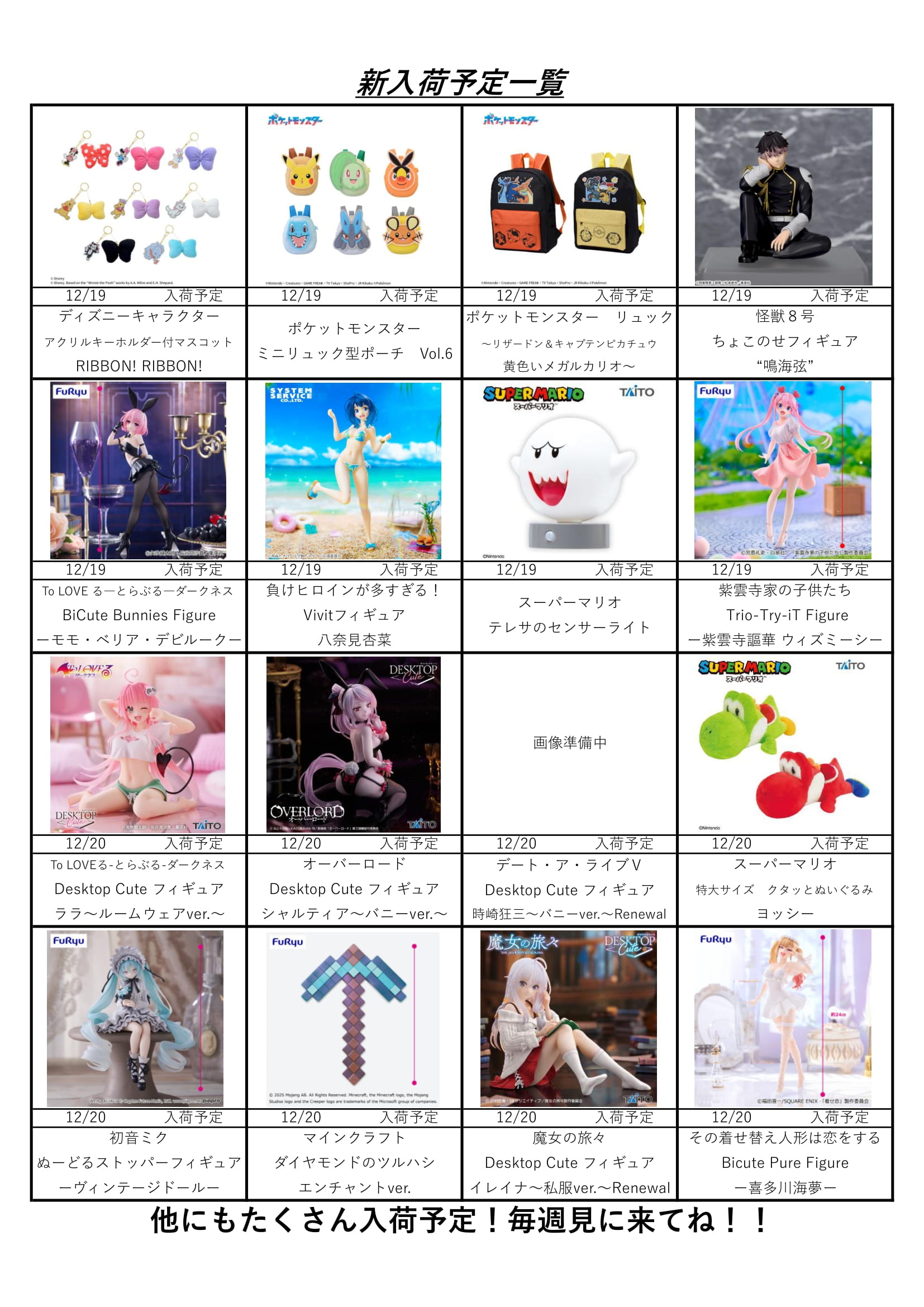 【アソベース豊川店】★12月アミューズ景品入荷予定表★