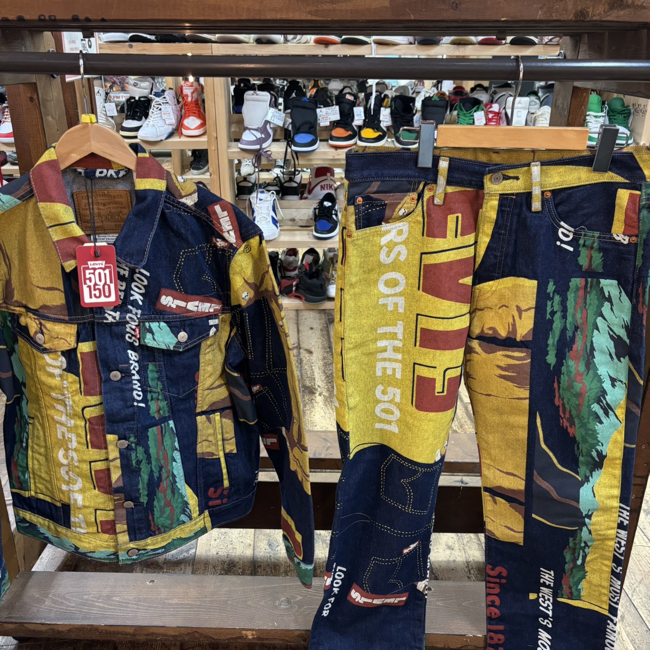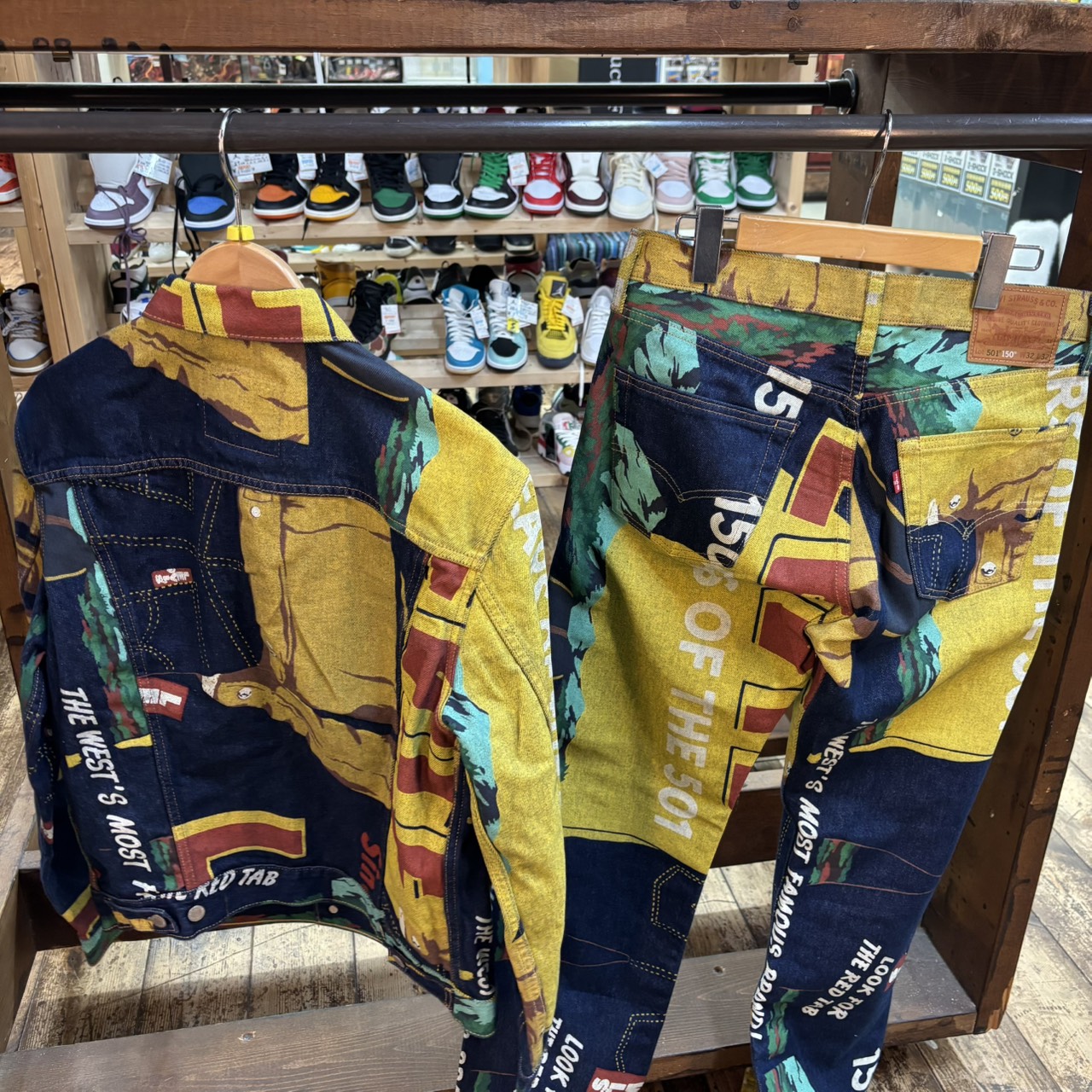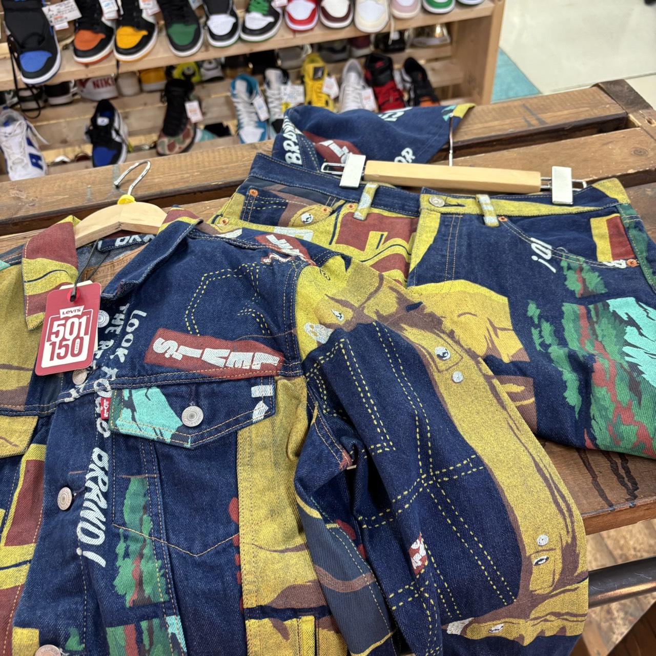 【鈴鹿店】古着コーナー買取情報❗◆Levis 501 150周年記念 バナープリントデニムジャケット、 デニムパンツ◆
