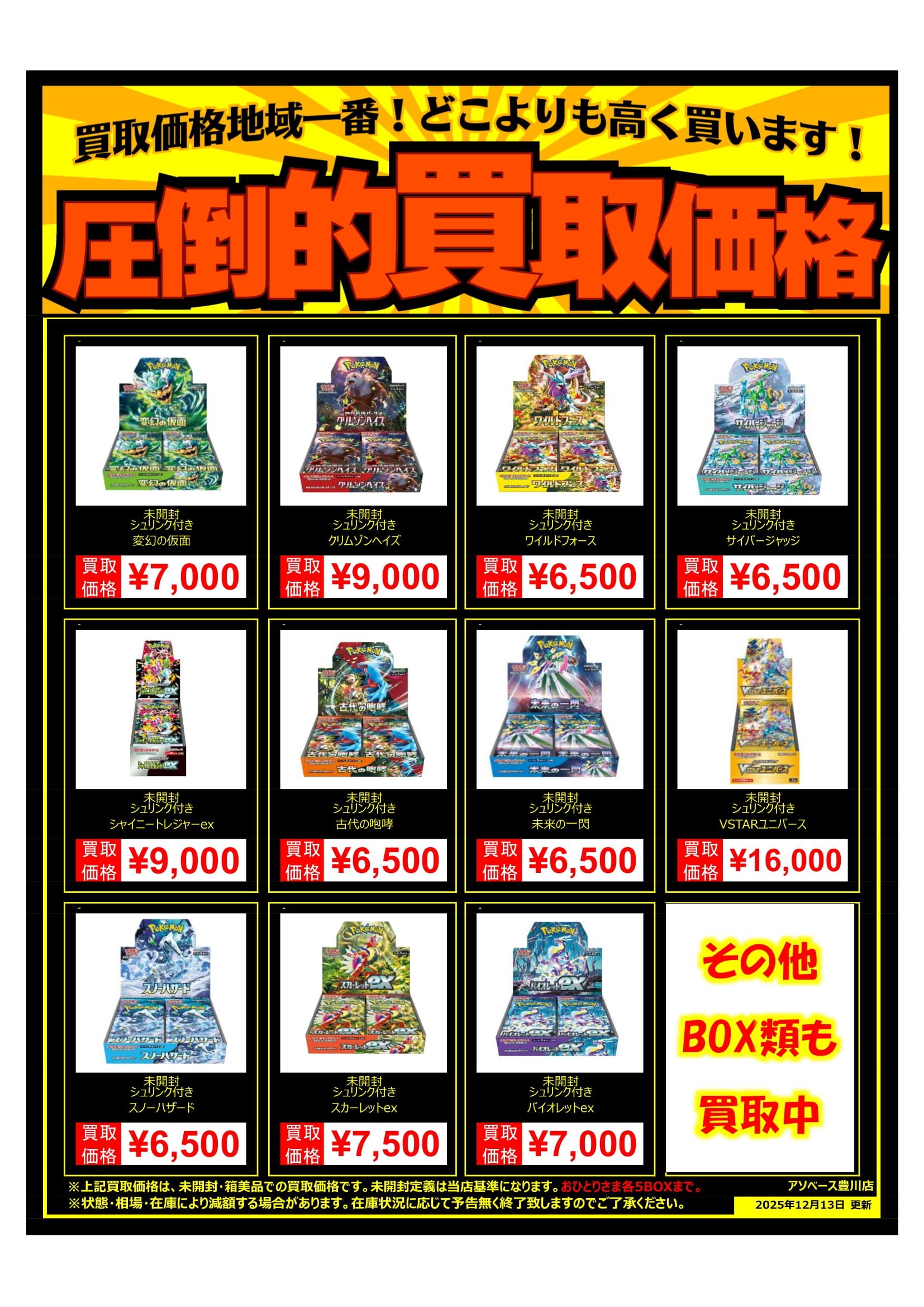未開封・シュリンク付きBOXの買取価格を一部変更致しました🙌