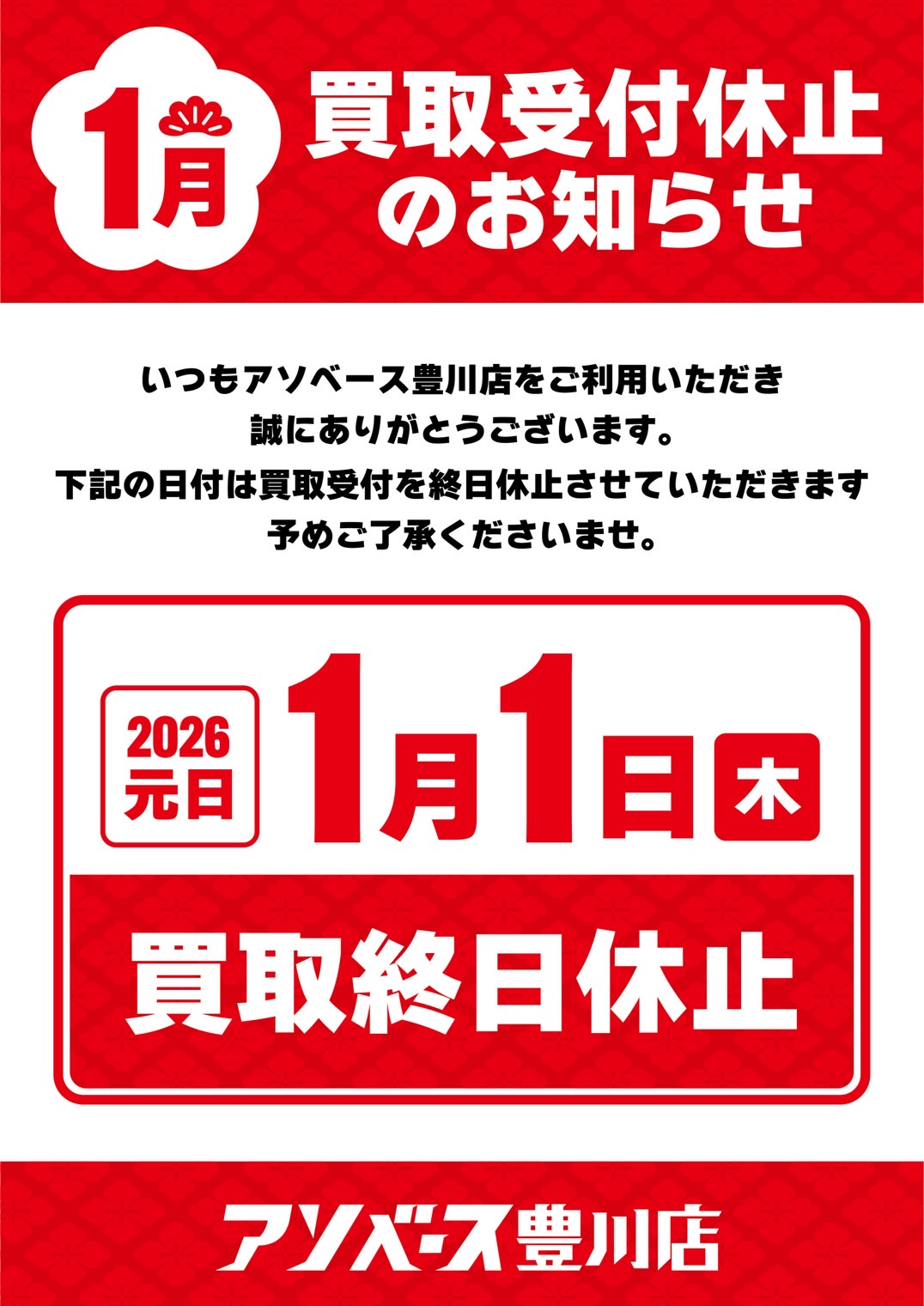 1/1買取休止のお知らせ