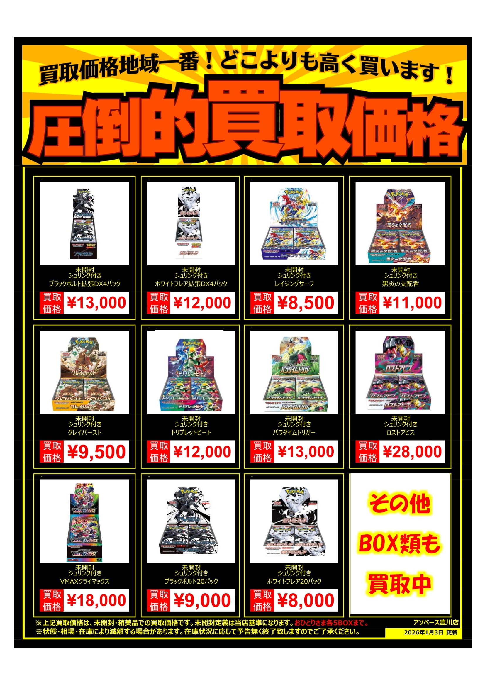未開封・シュリンク付きBOXの買取価格を一部変更致しました🙌