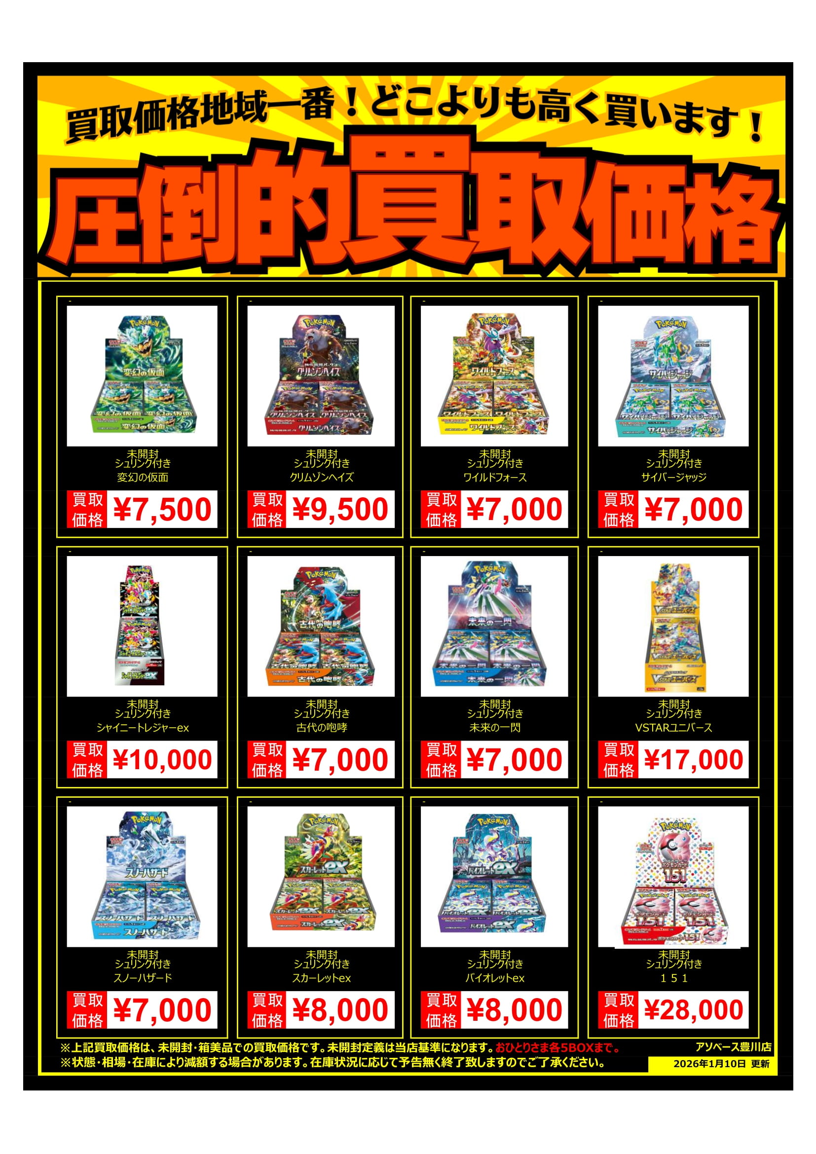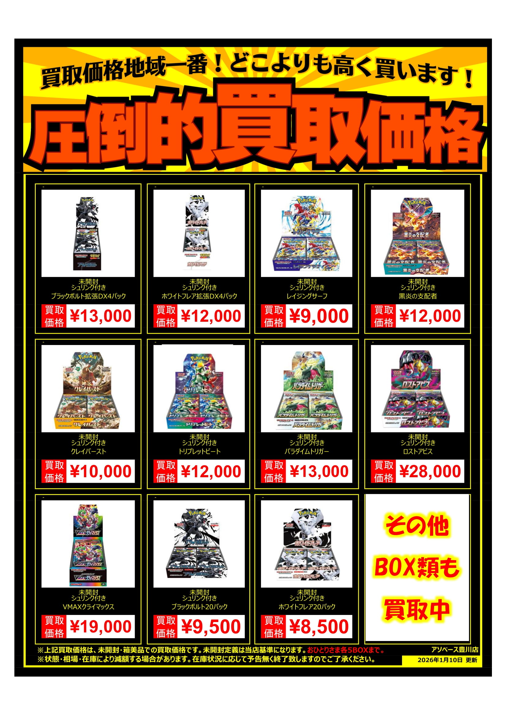未開封・シュリンク付きBOXの買取価格を一部変更致しました🙌