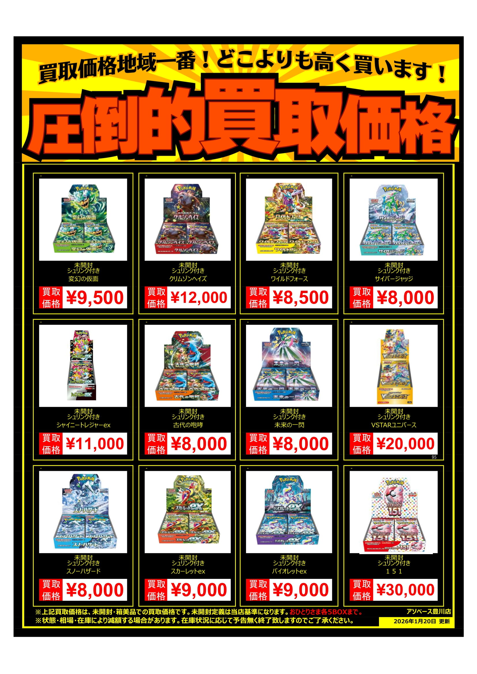 未開封・シュリンク付きBOXの買取価格を一部変更致しました🙌