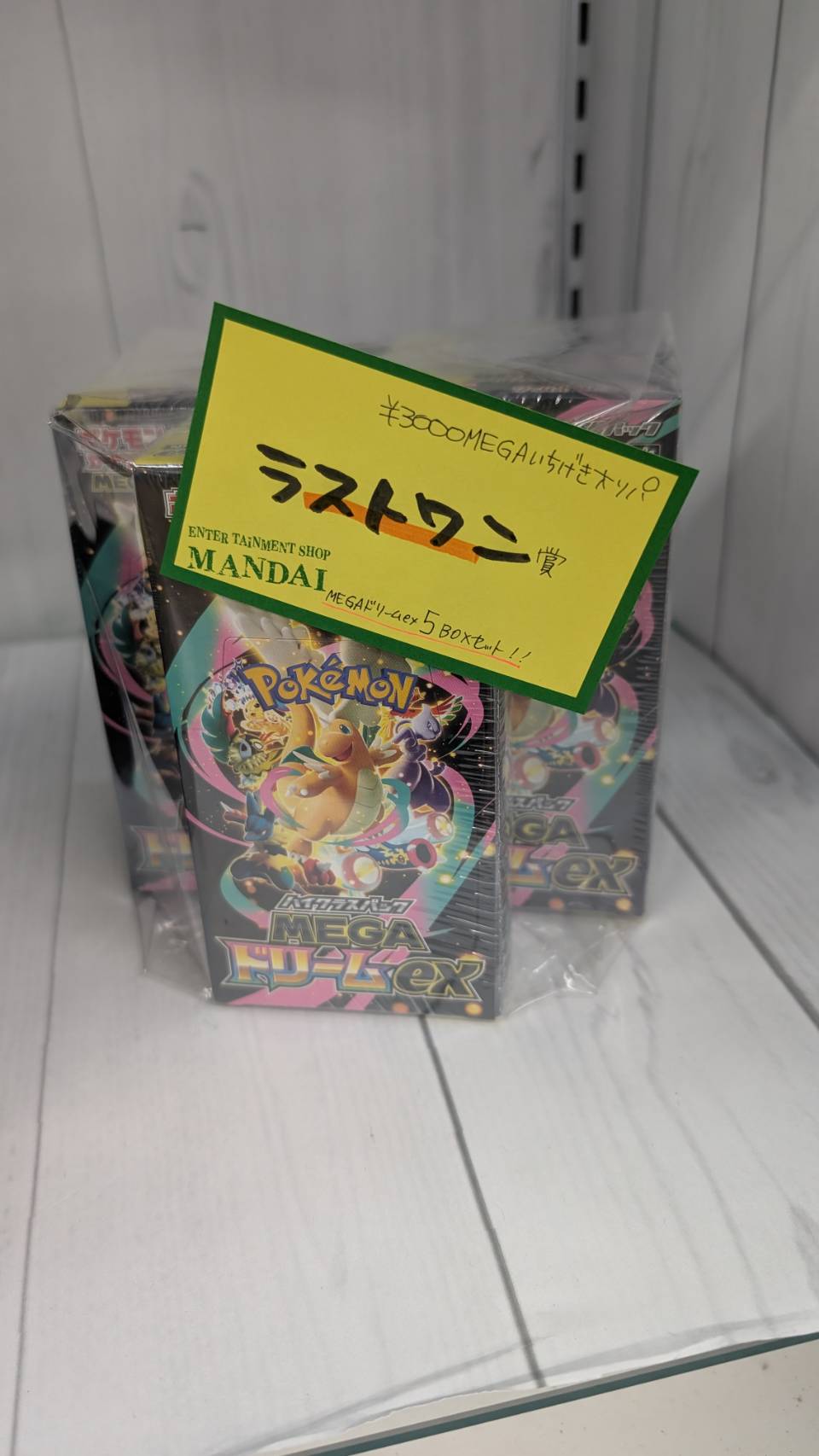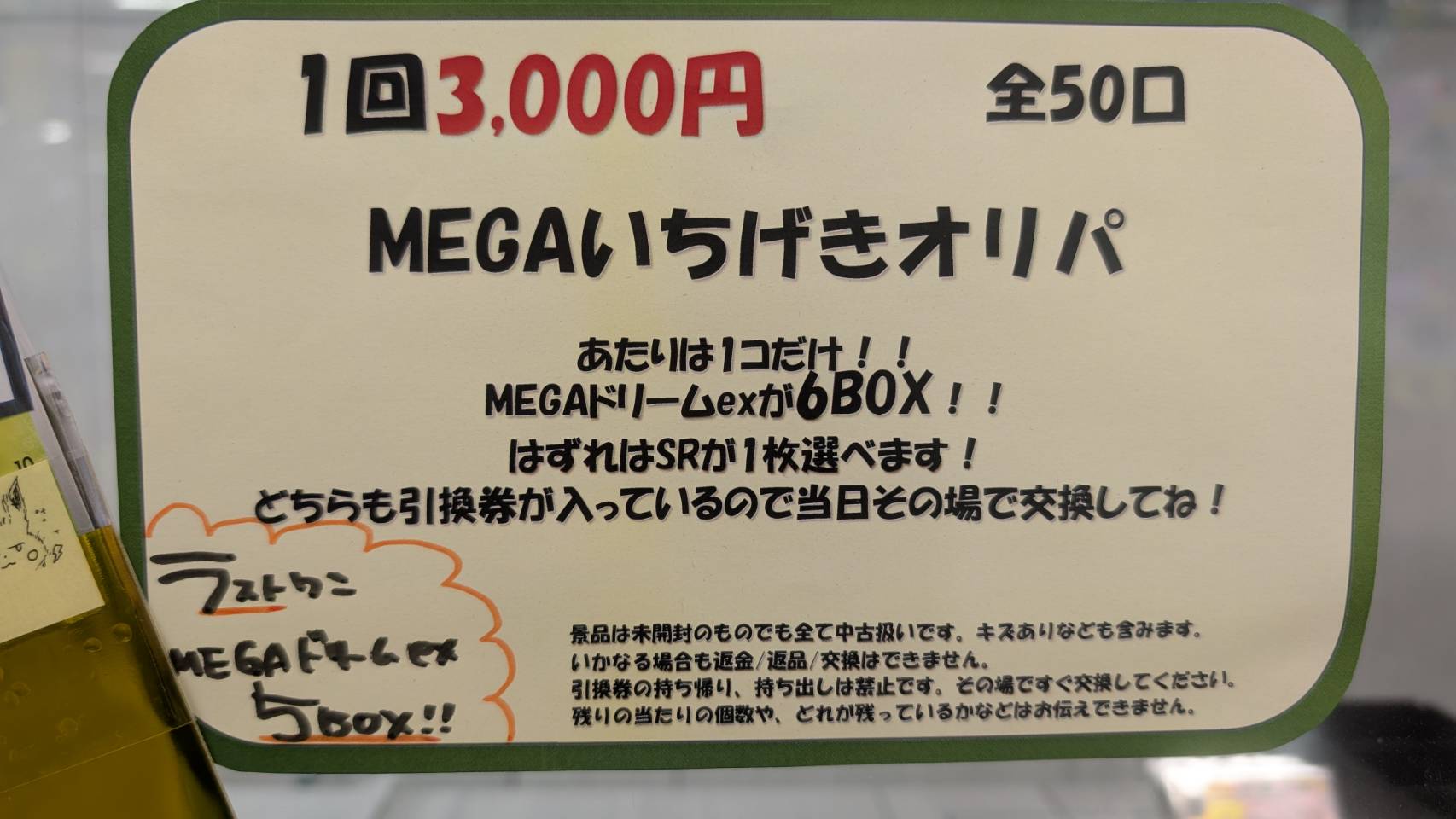 【四日市日永店】カード 一回3000円MEGAいちげきオリパ! 万代書店四日市日永店 四日市日永店 カード 四日市日永店 ガチャ 2026年1月21日 カード 一回3000円MEGAいちげきオリパ いちげきでぶち抜け!! あたりは一つだけ!! MEGAドリームex6BOXセット!! ぜひ運試ししにきてください🫶