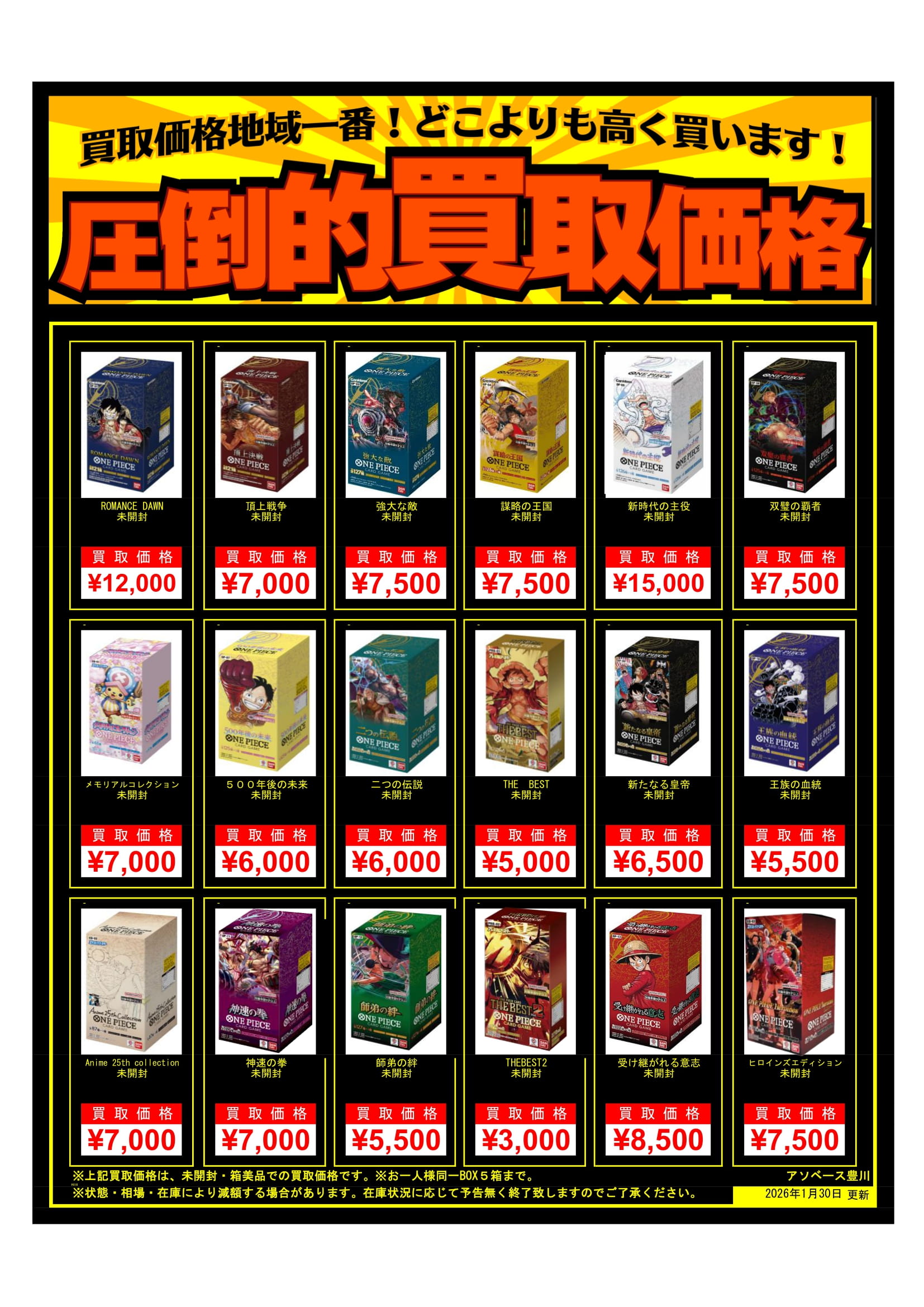 ★ワンピースカード未開封ボックス買取価格のお知らせ- 📢💭★★