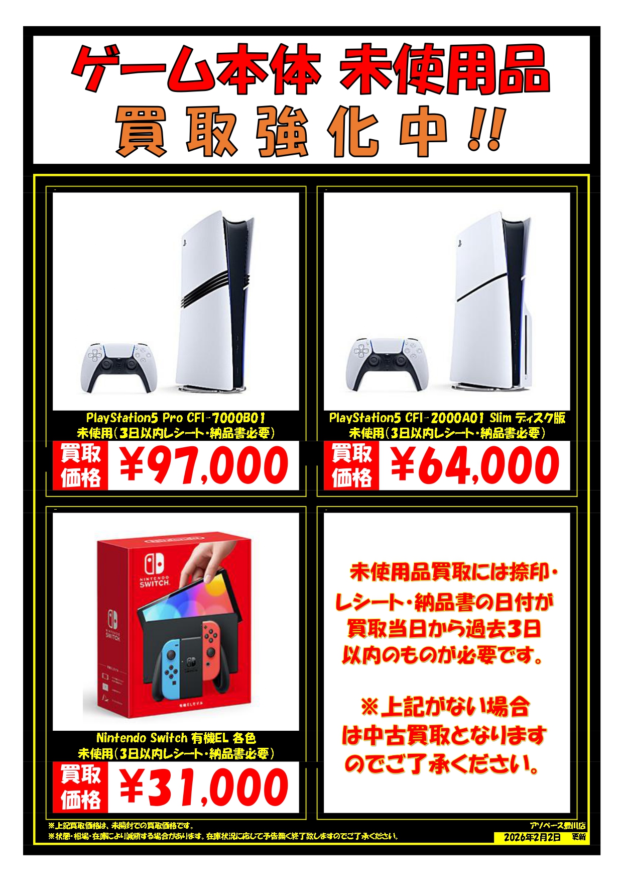 アソベース豊川店では未使用のゲーム本体を高価買取中‼️