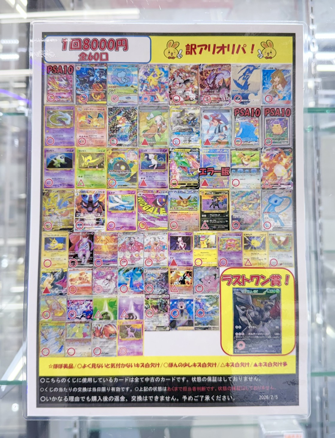 【鈴鹿店】訳ありオリパ発売中❕❕ 万代書店鈴鹿店 鈴鹿店 カード 鈴鹿店 ガチャ 2026年2月5日 🤍カードコーナーより💌 訳ありオリパ発売中❕❕ 1回 8000円 全 60口 MゲンガーEX PSA10や、メガリザードンSAR、ミュウSARなどが8000円で手に入るチャンスです🙌🌟 ラストワン賞ゼクロムBWRご用意しております🎁🌼
