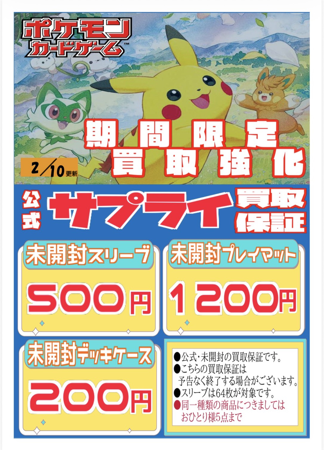 【アソベース豊川店】★ポケモンカード期間限定サプライ買取保証★ new アソベース豊川店 豊川店 買取情報 豊川店 カード 2026年2月10日 ★買取情報★ ※2026/2/10現在の価格となります。 在庫状況・状態によってお値段が変動いたします。予めご了承ください。 **************** こちら↓もぜひチェックしてみてくださいね♪(*´▽`*) ・最新のイベント情報はこちら ・最新の買取情報はこちら