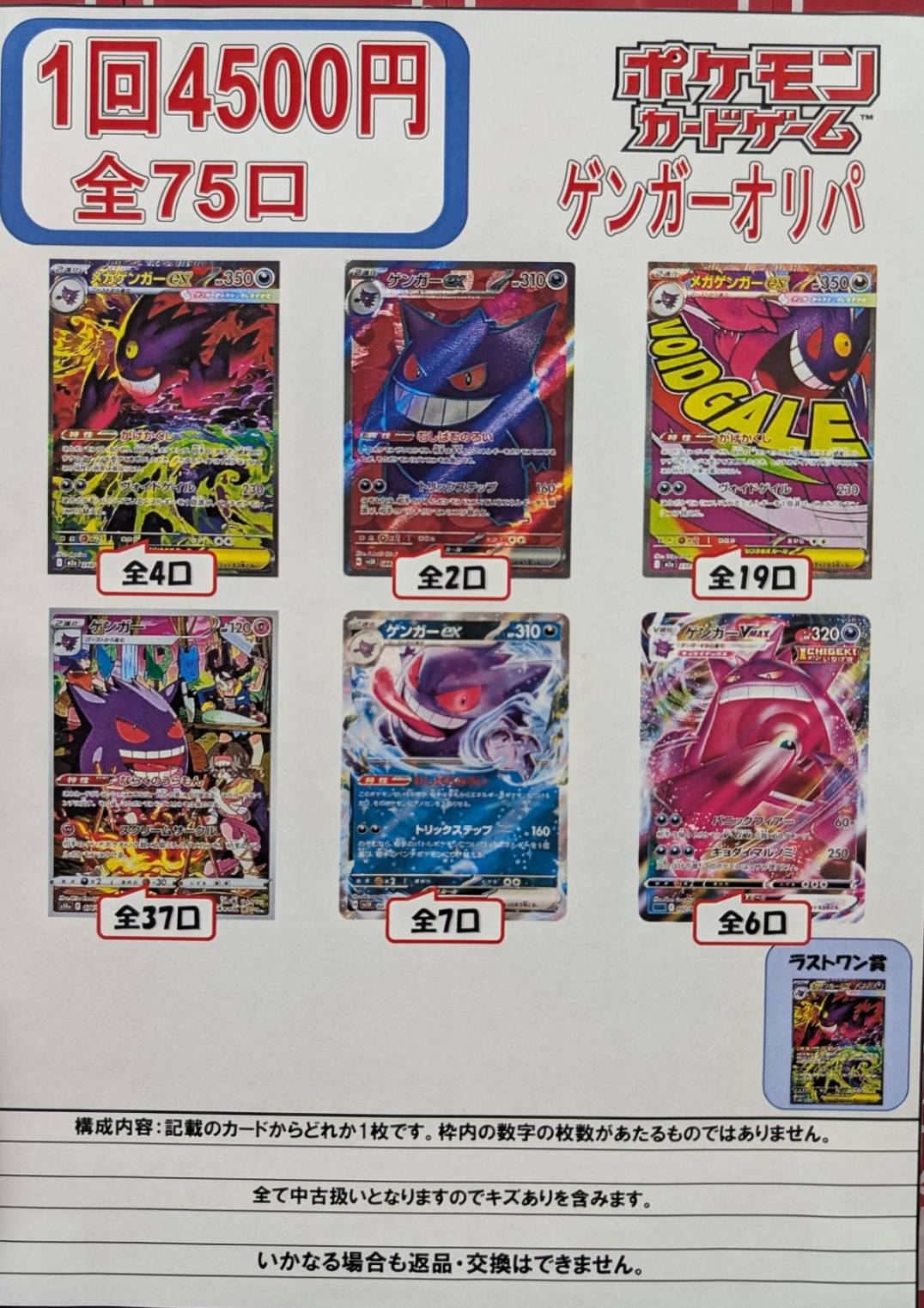 【四日市日永店】💜一回4500円ゲンガーオリパ💜 万代書店四日市日永店 四日市日永店 カード 2026年2月12日 カード 💜一回4500円ゲンガーオリパ💜 ゲンガーしか当たらない💜💜 記載のカードからどれか1枚当たります💜 ぜひ挑戦してみてください👻💜 ………………………………………………… 楽天はこちらから! amazonはこちらから!