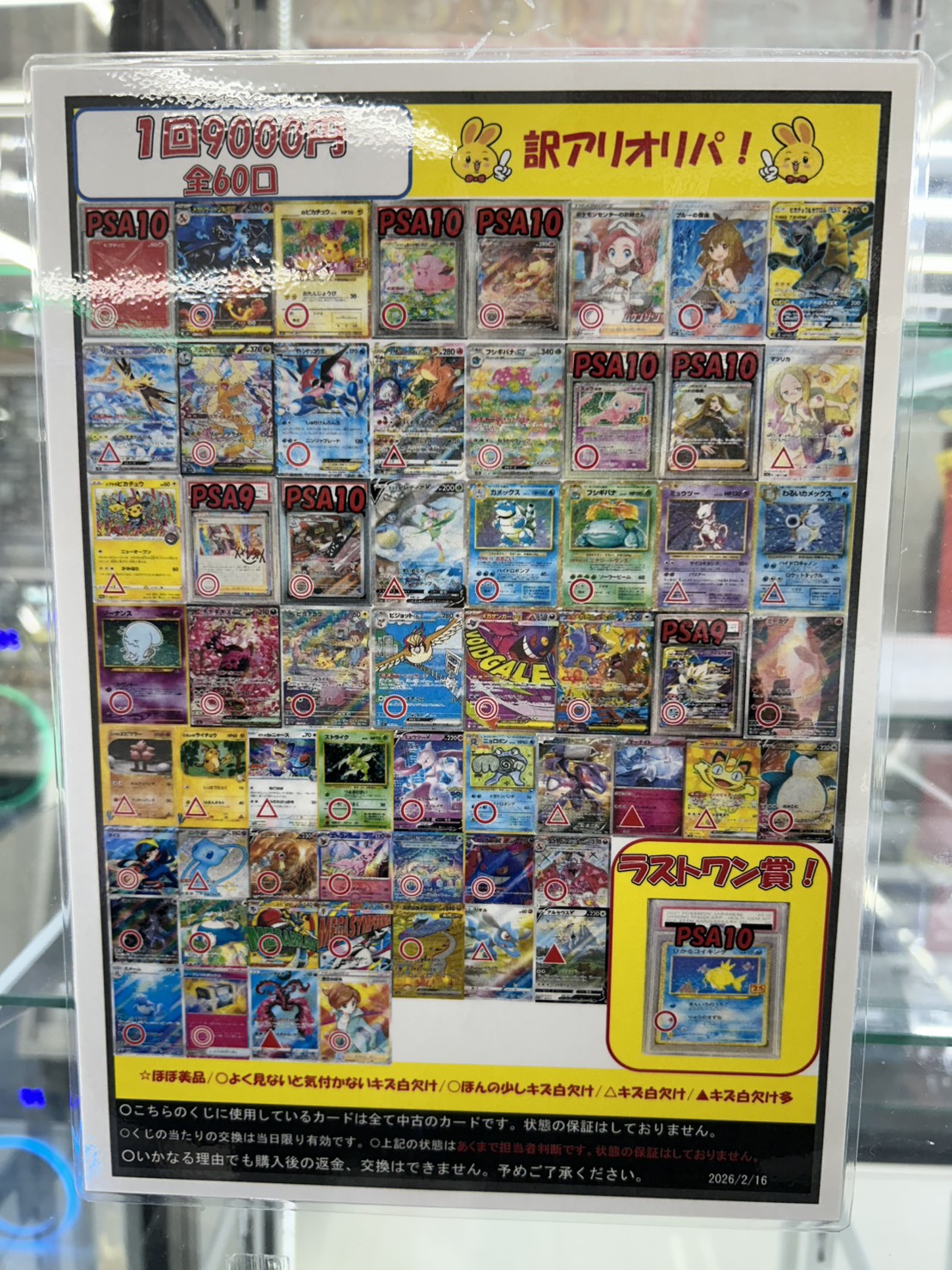 【鈴鹿店】訳ありオリパ発売中❕ 万代書店鈴鹿店 鈴鹿店 カード 鈴鹿店 ガチャ 2026年2月18日 カードコーナーより🧸🤎 訳ありオリパ発売中❕ 1回9000円 全60口 ビクティニ(プロモ)PSA10や、メガリザードンXex SAR、_のピカチュウなどが当たるチャンスです🍪🐻 ラストワン賞にひかるコイキング25th PSA10をご用意しております🤎🤎🤎