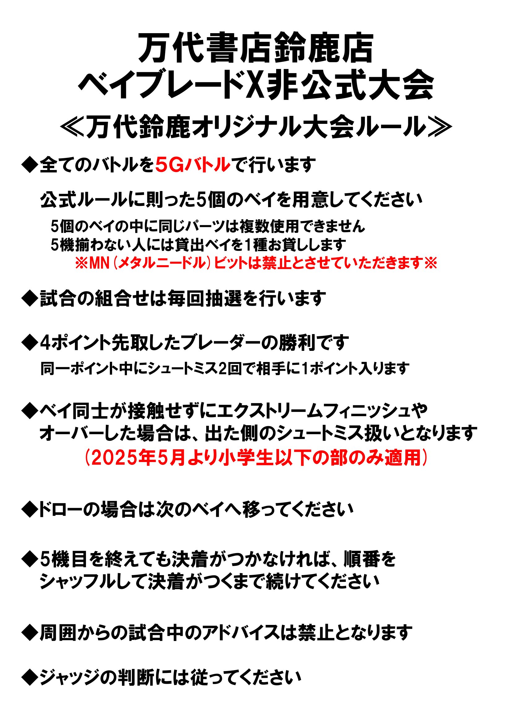 小学生以下の部終了後に、ベイブレードX製品が当たるジャンケン大会も開催しますのでお楽しみに♪