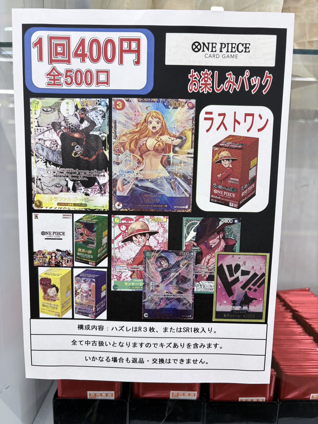 1回400円 ワンピースカードお楽しみパック発売中です🔥