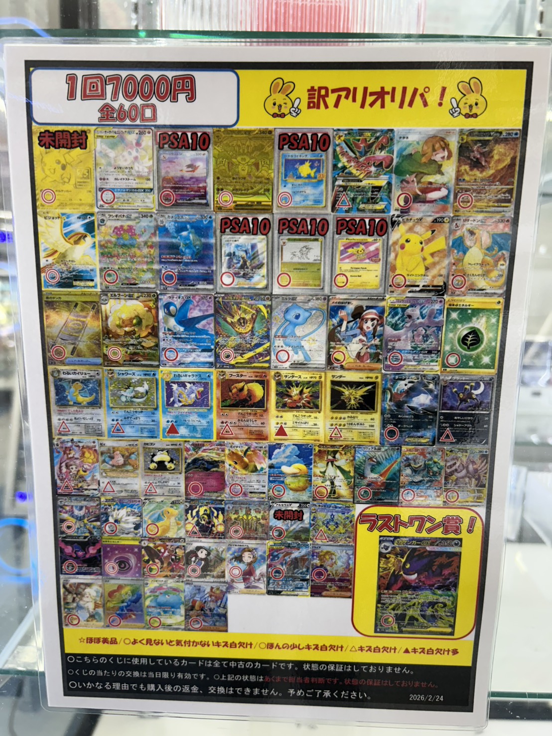 【鈴鹿店】訳ありオリパ発売中です🙌 万代書店鈴鹿店 鈴鹿店 カード 鈴鹿店 ガチャ 2026年2月25日 カードコーナーより💫 訳ありオリパ発売中です🙌 1回 7000円 全 60口 ピカチュウV(未開封)やリザードンex SAR PSA10、サーナイト&ニンフィアGX SRなどが7000円で当たるチャンスです🌟 ラストワン賞にメガゲンガーex SARご用意しております💖💫