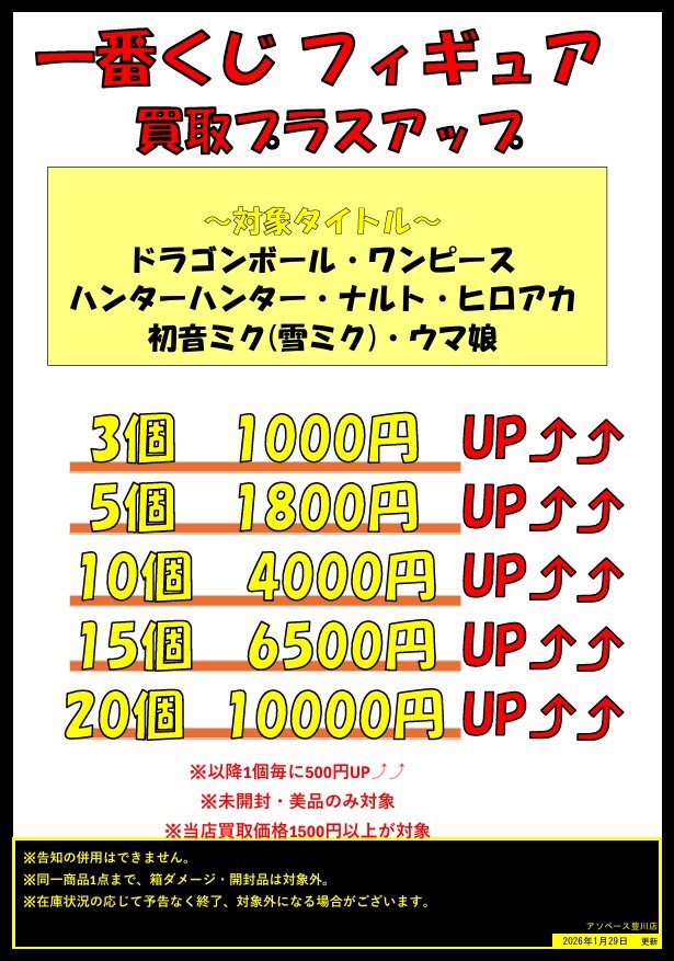 【アソベース豊川店】おもちゃ入荷情報 アソベース豊川店 豊川店 こんなの買取ました! 豊川店 おもちゃ 2026年2月28日 おもちゃ入荷情報 買取させて頂きました‼️ ありがとうございます💫 当店では一番くじフィギュアを買取強化中❤️🔥 さらに一部作品対象になりますが買取点数に応じて買取プラスアップもあります❗️(※未開封品、美品に限ります) おもちゃを売るのも買うのもアソベース豊川へ🚀