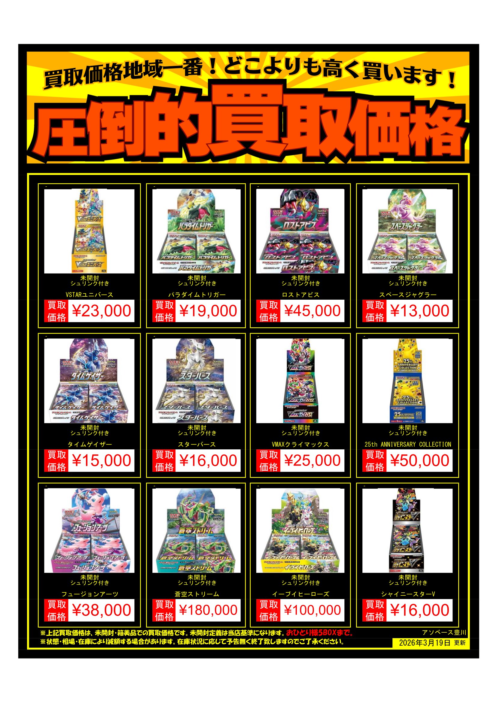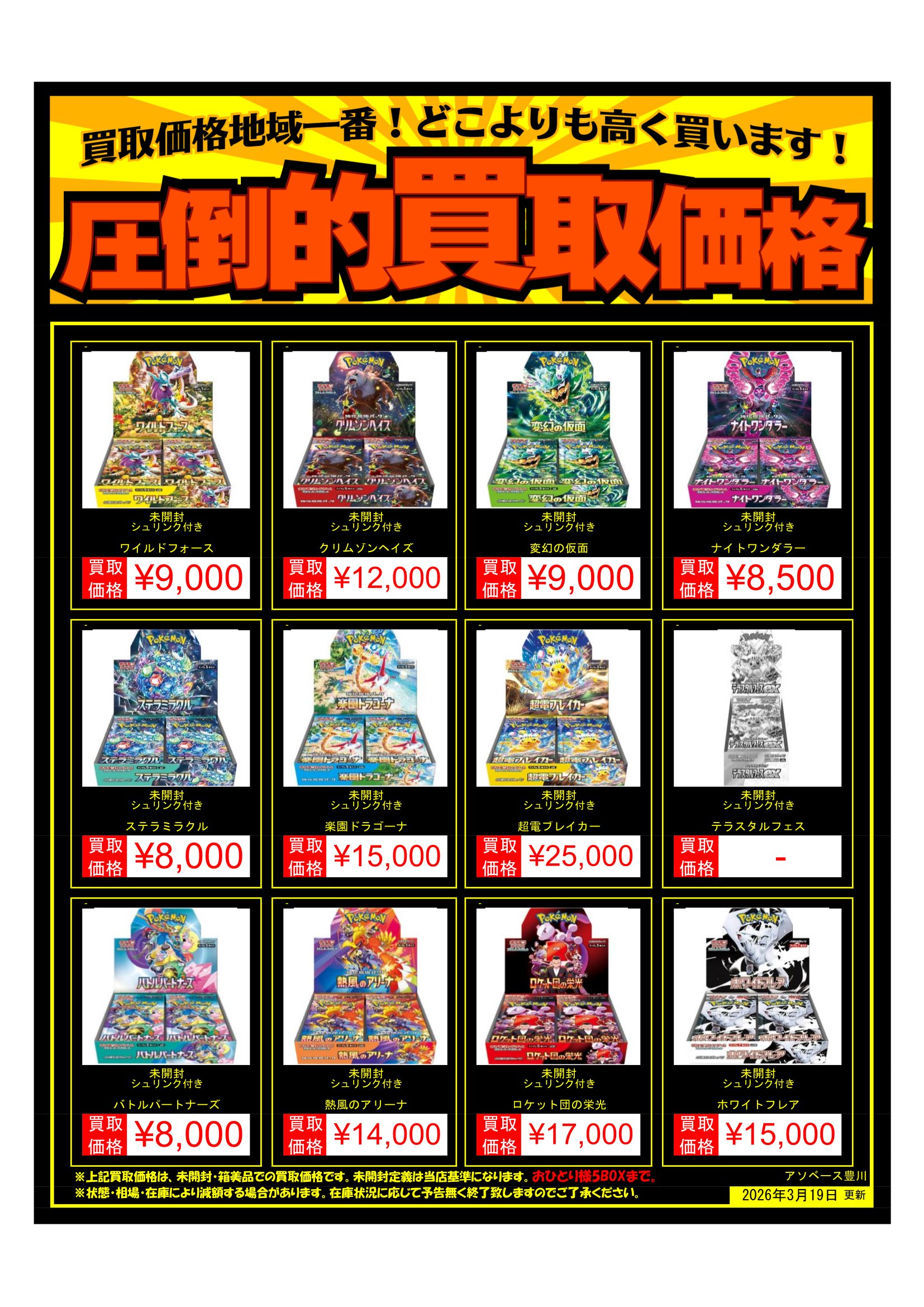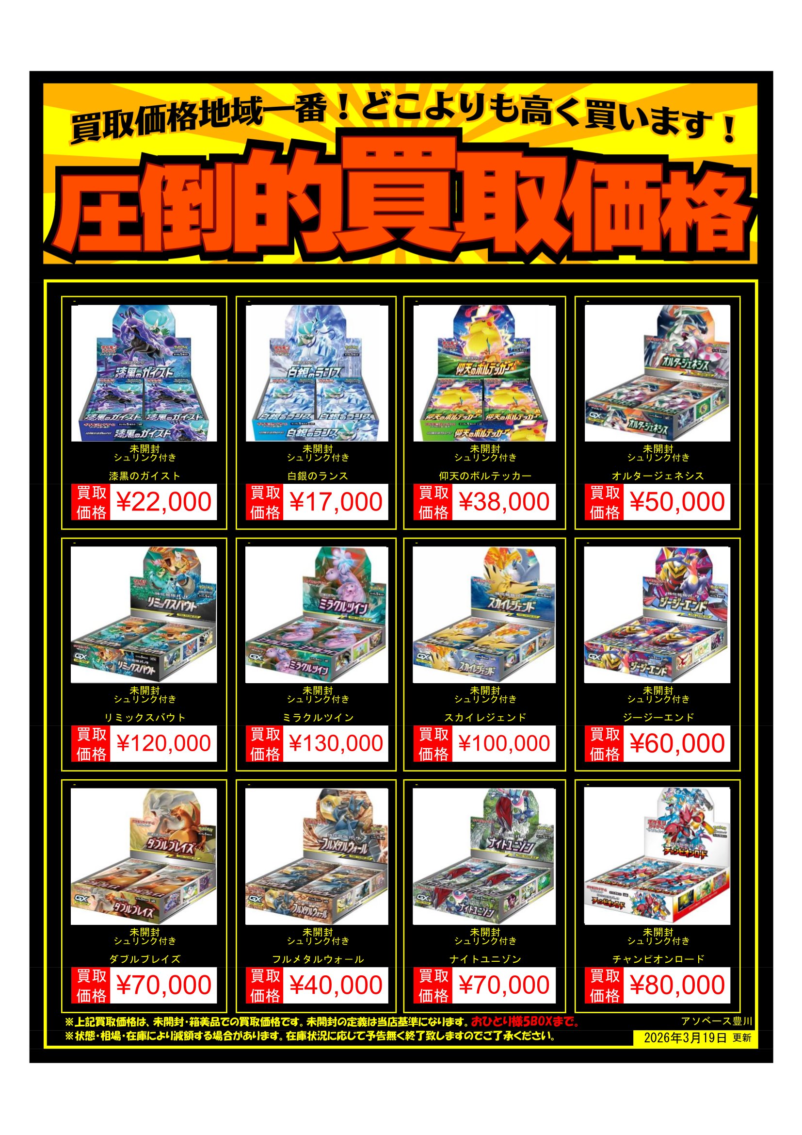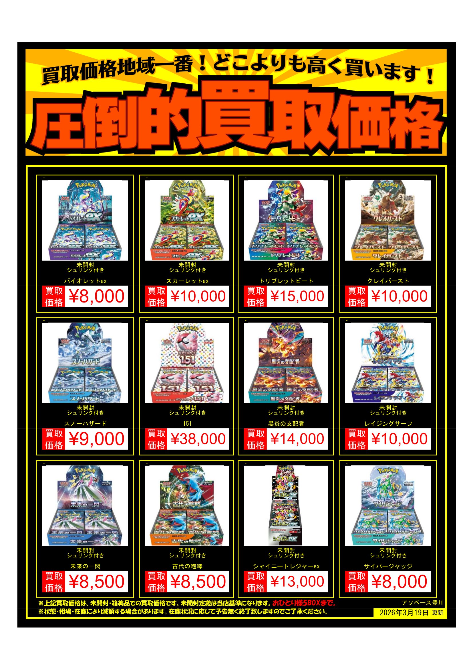 【アソベース豊川店】ポケモンカードBOX買取告知更新しました!