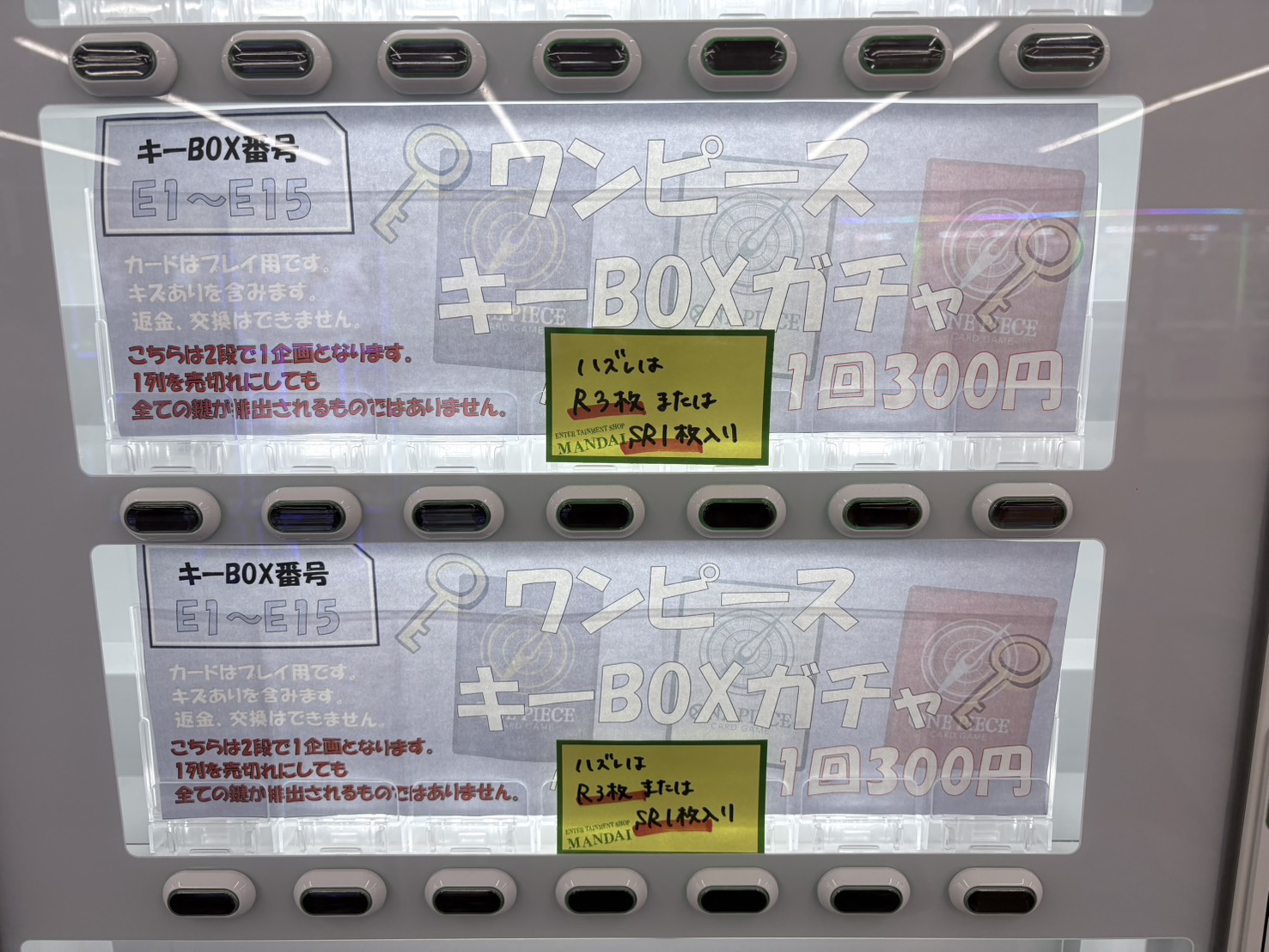 【四日市日永店】ワンピースカード キーボックスガチャ🔑 新しいもの補充しました‼️ 万代書店四日市日永店 四日市日永店 カード 四日市日永店 ガチャ 2026年3月20日 カード 1回300円 ワンピースカード キーボックスガチャ🔑 新しいもの補充しました‼️ 今回の当たりの一部はコチラ💁🏼♀️ BOXやシングルカード沢山入っております✨ 運が良ければ300円でゲットできちゃうかも👀 是非挑戦してみてください🔥