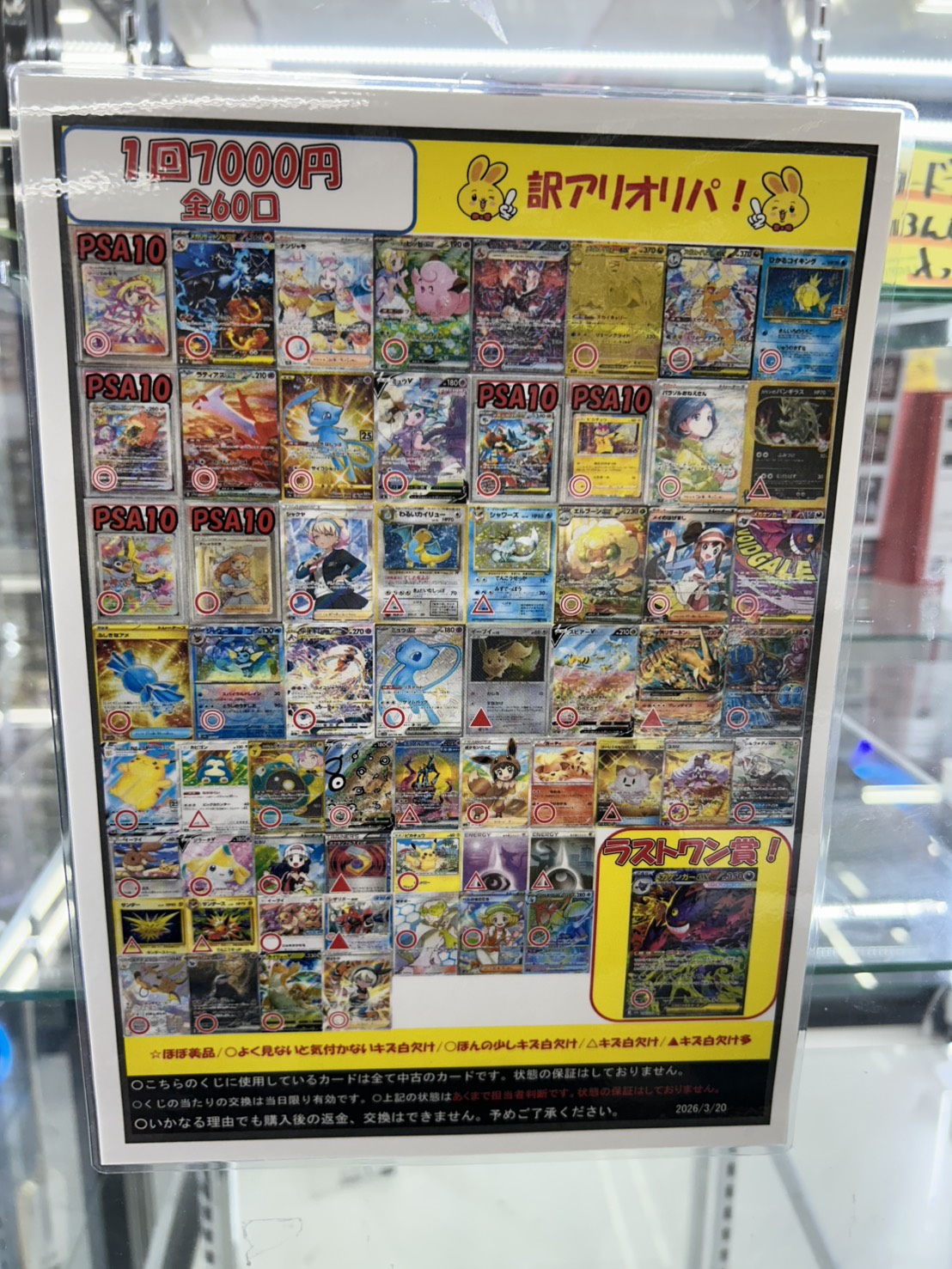 【鈴鹿店】カードコーナーより🐱 訳ありオリパ発売中です🙌 万代書店鈴鹿店 鈴鹿店 カード 2026年3月20日 カードコーナーより🐱 訳ありオリパ発売中です🙌 1回 7000円 全 60口 リーリエの全力 SR PSA10やメガリザードンxex SAR、ナンジャモSARなどが7000円で当たるチャンスです🌟 ラストワン賞にメガゲンガーex SARをご用意しております😍
