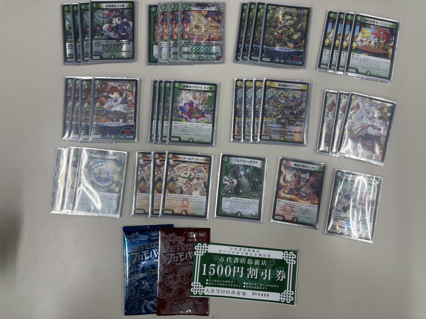【鈴鹿店】デュエル・マスターズ大会結果報告! 万代書店鈴鹿店 鈴鹿店 イベント情報 鈴鹿店 カード 2026年4月4日 デュエル・マスターズ大会結果報告! 本日のデュエル・マスターズ大会デュエマフェス【オリジナル】は12名の方に参加していただきました! 優勝は 9さい さん ドリームメイト 初優勝できてめっちゃうれしいです。 優勝おめでとうございます♪ 次回は4/11(土)の開催です。 開催時間は16時からとなっております。