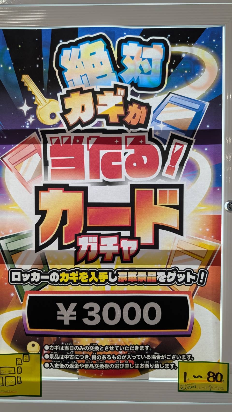 【四日市日永店】🔑一回3000円絶対あたるカードガチャ🔑 売り切れたので新しいの入れました✌️ 万代書店四日市日永店 四日市日永店 カード 2026年4月4日 カード 🔑一回3000円絶対あたるカードガチャ🔑 売り切れたので新しいの入れました✌️ ぜったいにかぎがでます🔑 黄色のロッカーも含めあたりは8カ所🎯🎊 ぜひガチャりにきてください🫶
