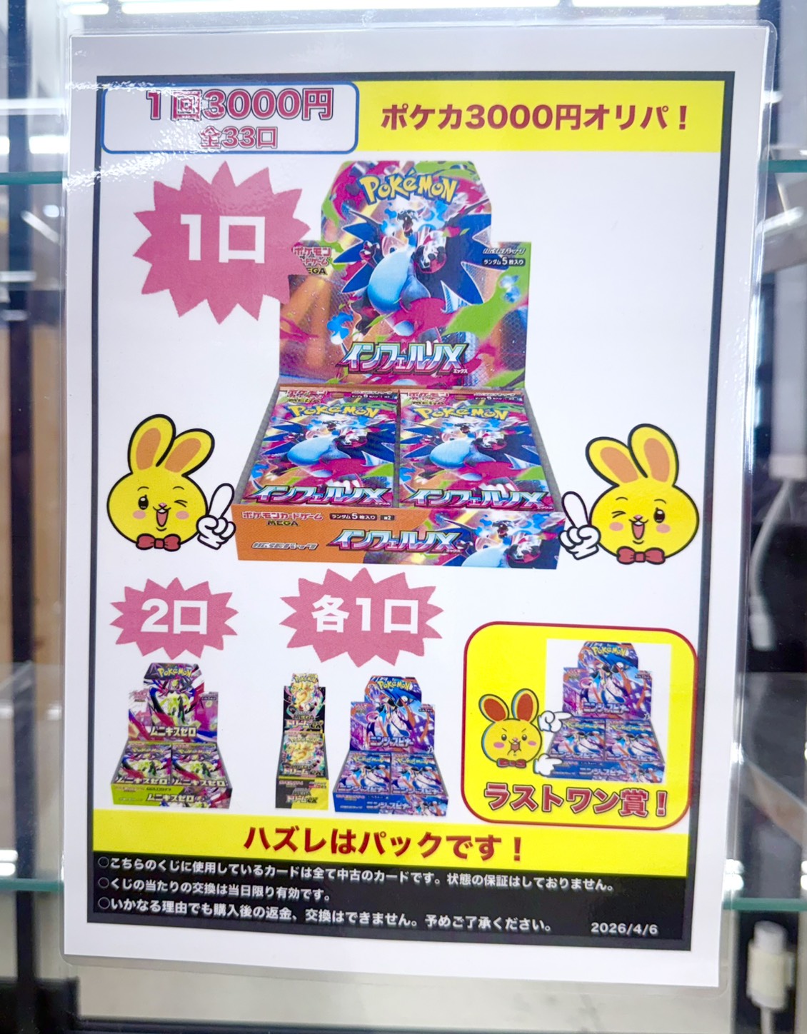 【鈴鹿店】✨カードコーナーより✨ ポケカオリパ発売中💫 万代書店鈴鹿店 鈴鹿店 カード 2026年4月7日 ✨カードコーナーより✨ ポケカオリパ発売中💫 1回 3000円 全 33口 インフェルノX、ムニキスゼロ、MEGAドリーム、ニンジャスピナーのBOXが3000円で当たるチャンスです🐝⭐️ ラストワン賞ニンジャスピナーBOXご用意しております🎁💛