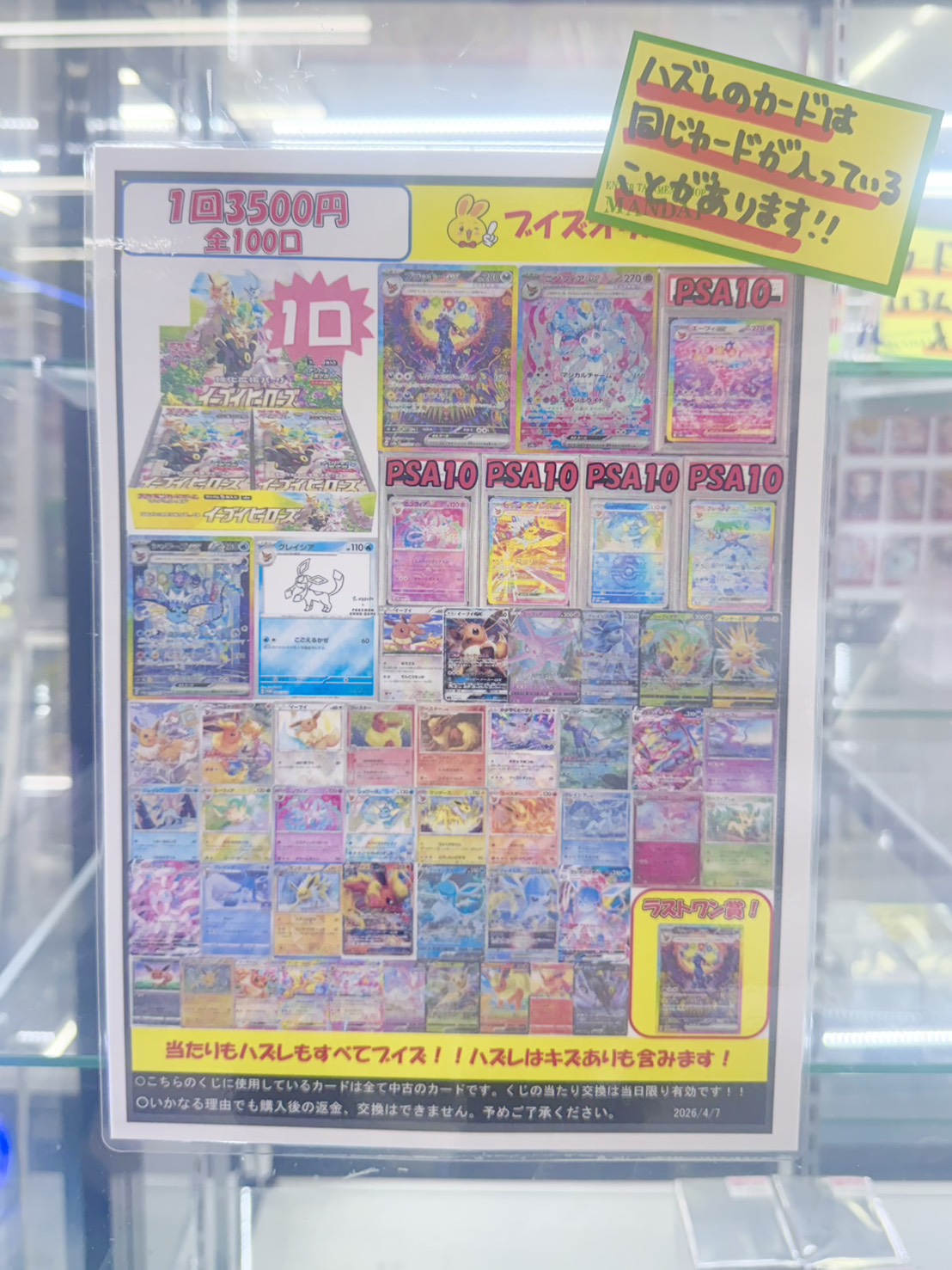 【鈴鹿店】✨カードコーナーより✨ ブイズオリパ発売中🤍🪽 万代書店鈴鹿店 鈴鹿店 カード 2026年4月8日 ✨カードコーナーより✨ ブイズオリパ発売中🤍🪽 1回 3500円 全 100口 イーブイヒーローズBOXや、ブラッキーSAR、ニンフィアSARなどが3500円で当たるかも❕❕ ハズレも全てブイズになっております🍨🥄 今回のラストワン賞はブラッキーSARです⛸️💌