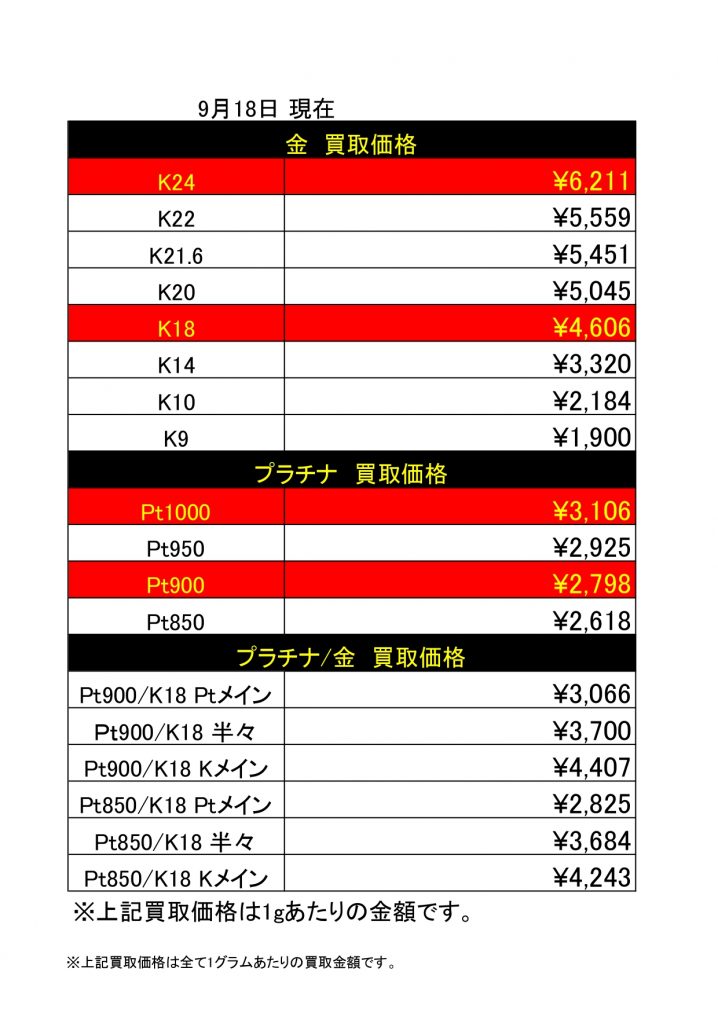 【四日市日永店・鈴鹿店】金 プラチナ買取価格のご案内です!