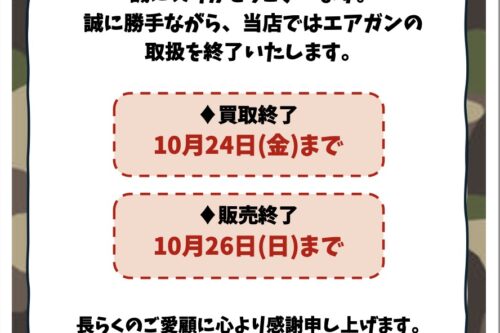 【四日市日永店】《買取終了:10月24》エアガン取扱終了のお知らせ《販売終了:10月26日》■