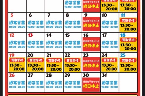 【四日市日永店】《10/27~10/31》買取カレンダー変更しております。