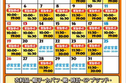 【鈴鹿店】10月度の古着買取カレンダー最新版となります👕👚🧢👟