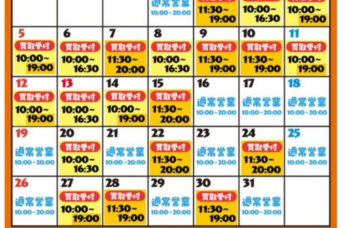 【鈴鹿店】11月度の古着買取カレンダーに なります👕👚🧢👟
