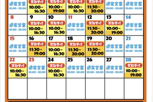 【鈴鹿店】2月度の古着買取カレンダー最新版に なります👕👚🧢👟