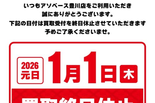 【アソベース豊川店】1/1買取休止のお知らせ