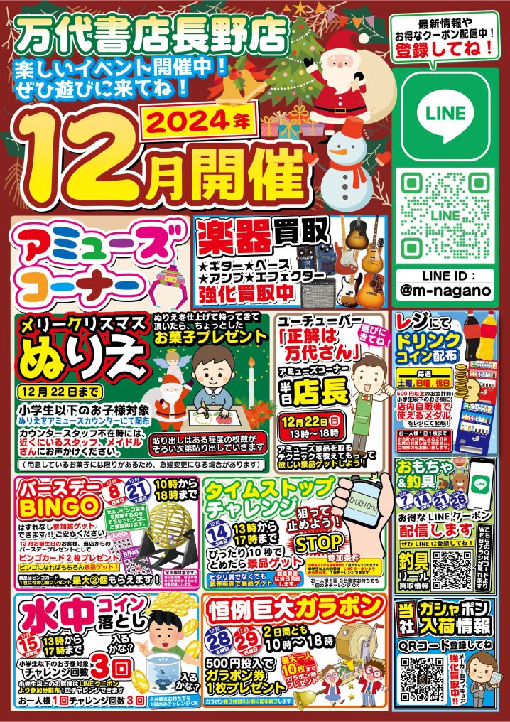 12月のイベントチラシ完成しました😆今月の入荷告知も張り出しましたよ☺️一押し景品多数入荷します!今月もお待ちしております😆#長野市 #万代長野 #万代書店長野…