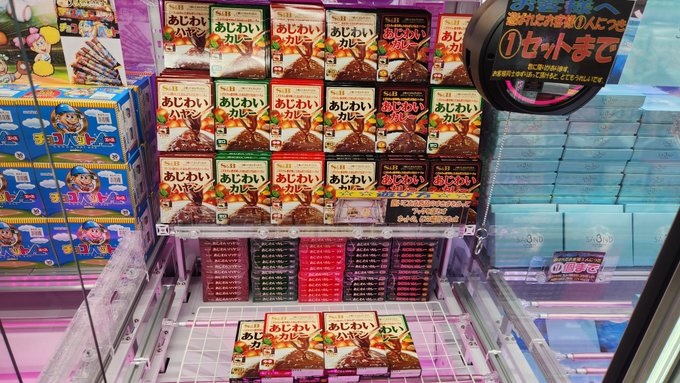 入荷しました!あじわいカレー😊 これね、おいしいんですよねぇ😋 あじわいハヤシ含め5種類同時獲得できます!#カレー#万代書店長野#万代長野#クレーンゲーム pic.twitter.com/…