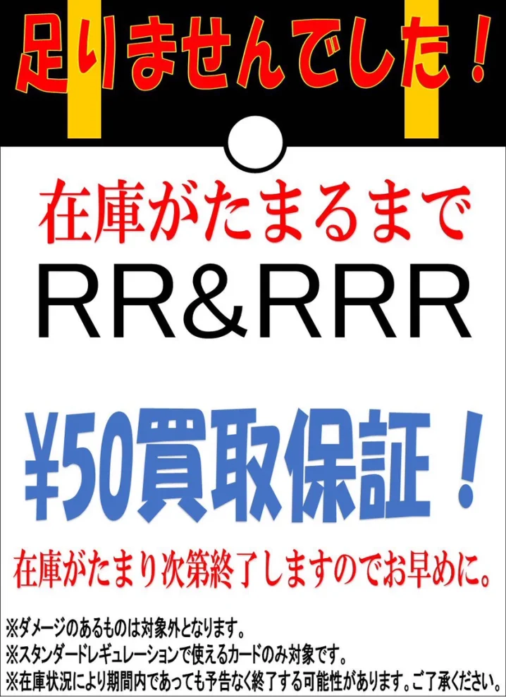 期間限定でRR&RRRの最低保証金額を¥50にします! 在庫が集まり次第元に戻しますのでお早めに! pic.twitter.com/Dw6mCHoMzm — 万代書店長野店 カード (@mansho_n_card) Ju…