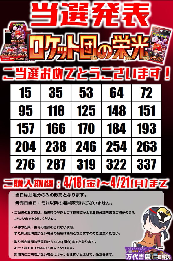 🎊当選発表🎊 沢山のご応募ありがとうございました。 ご当選の皆様おめでとうございます! ※当選分のみの販売となります。 4/18~4/21営業内にご購入ください。 発売日当日・それ以降の通…