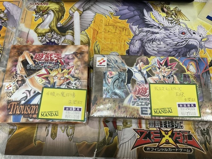 かなり珍しい物が入荷しました🤩千眼の魔術書未開封、デュエルマスターズEX-R未開封珍しい物ですのでお求めの方お早めに🥰 pic.twitter.com/kuAJl0FX6Q —…