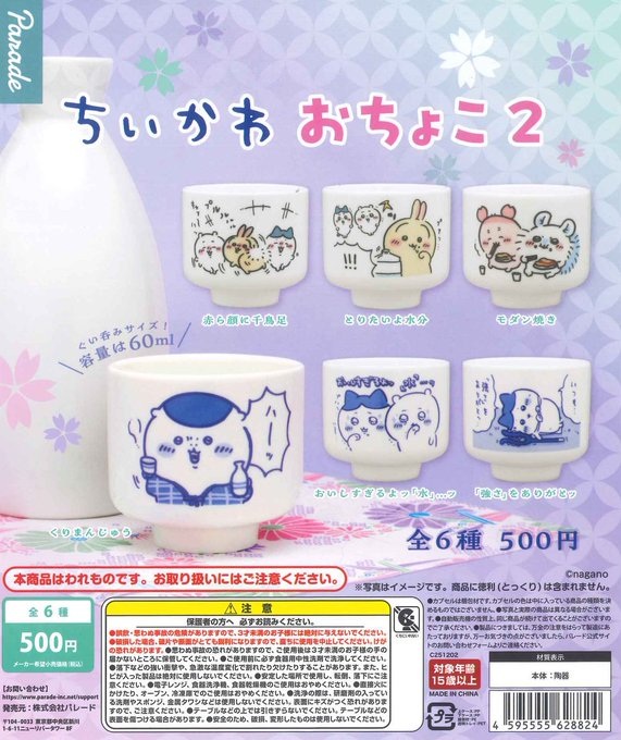 本日の入荷情報です!ちいかわ おちょこ2 パレード以上です!#カプセルトイ#ガチャガチャ#ガチャ#ガチャポン#万代書店長野店#まんしょ#入荷情報 pic.twitter.com/SwC79XSHL6 — 万代…