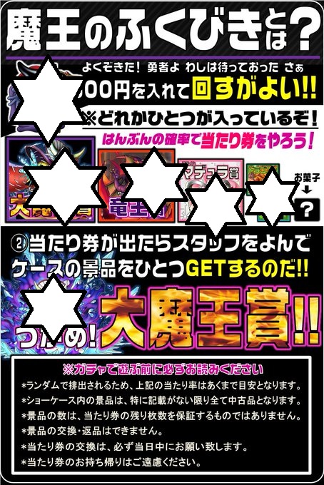 【魔王のふくびき 稼働開始!!】 2階ゲームコーナーにて、新しいガチャ「#魔王のふくびき」が稼働開始しました✨ 国民的RPG「ドラゴンクエスト」でお馴染み、闇の大魔王から”勇者"の皆さんへの&#x…
