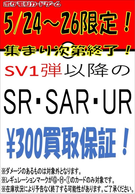 3日間限定でSRなどの強化買取を行います! この機会にぜひお持ち込みください! pic.twitter.com/J7pXXE5VrV — 万代書店長野店 カード (@mansho_n_card) May 22, 2025…