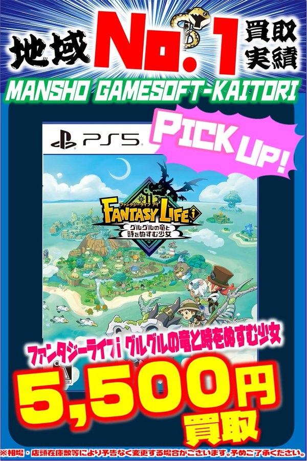 #PS5 ソフト 買取情報‼ 【ファンタジーライフi グルグルの竜と時をぬすむ少女】🔥5500円買取🔥 大人気ソフトの為在庫がありません‼‼(´;…