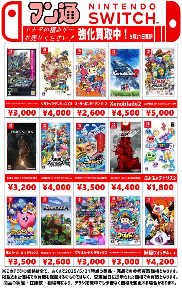 【#ゲーム買取 情報】#Switch ソフトの買取チラシを更新しました🔥 「Xenoblade2」4500円買取「マリオカート8 デラックス」3000円買取 その他掲載外ソフトも高価買取中ですので、是非万…